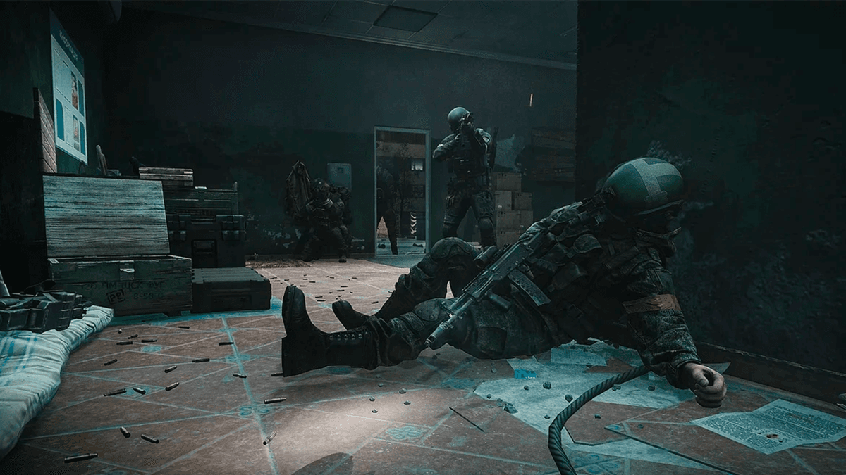 После начала миссии подбери AK-12 с трупа, чтобы иметь хоть какие-то шансы против смертоносных ботов.
