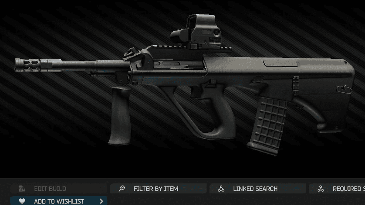 Другая топовая штурмовая винтовка — AUG A1. Её можно купить у Миротворца, и на раннем этапе ты вряд ли найдёшь что-то круче. А вот позже лучше «пересесть» на более крутую A3.
