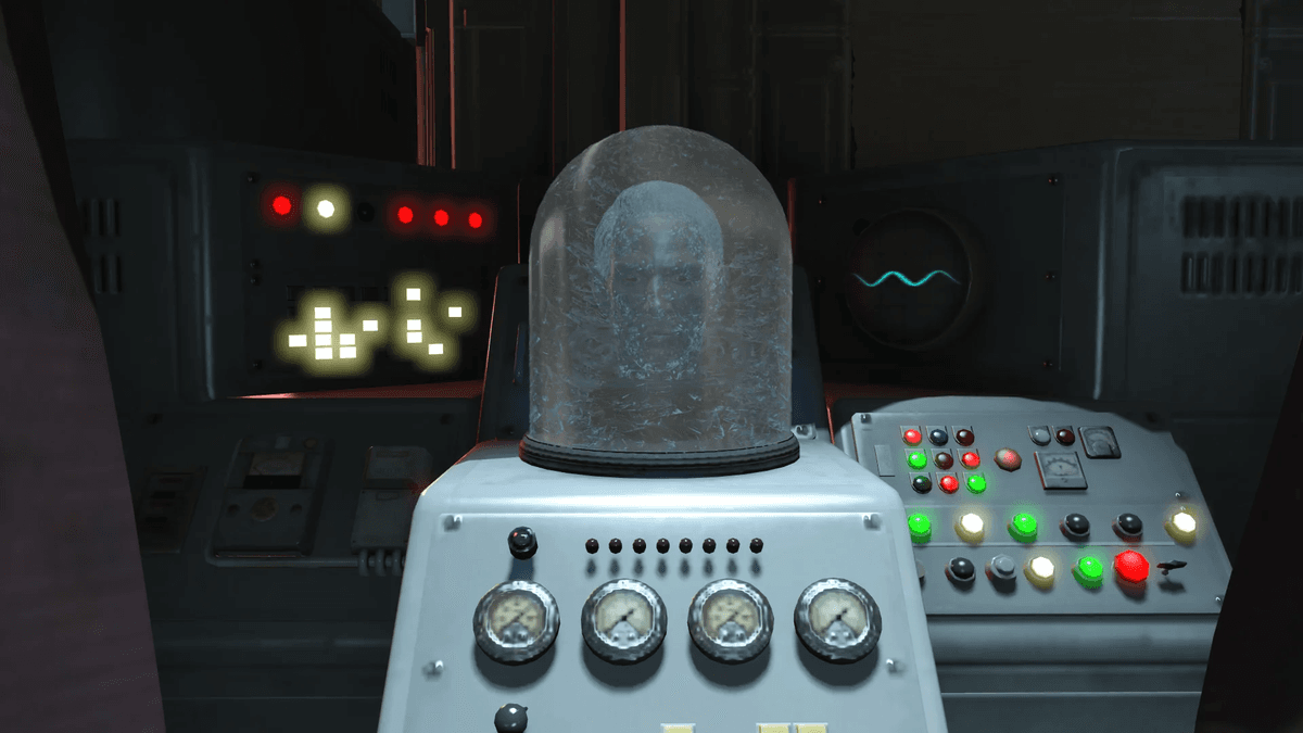 Когда найдёшь все рисунки, вернись к Сьерре, которая ждёт тебя у офиса Брэдбертона. Открой дверь с помощью кодовой панели и войди внутрь. Там тебе нужно воспользоваться скрытой кнопкой у автомата с газировкой, чтобы попасть в секретное убежище, где лежит живая голова Брэдбертона. Бедолага попросит его прикончить.