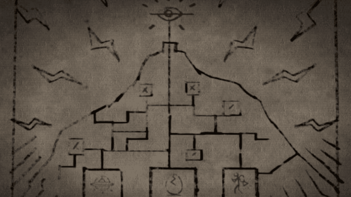 А 5 зачёркнутых глифов всего лишь показывают, где найти соответствующие символы на самой горе. Они же помогают точнее определить расположение тарелок.
