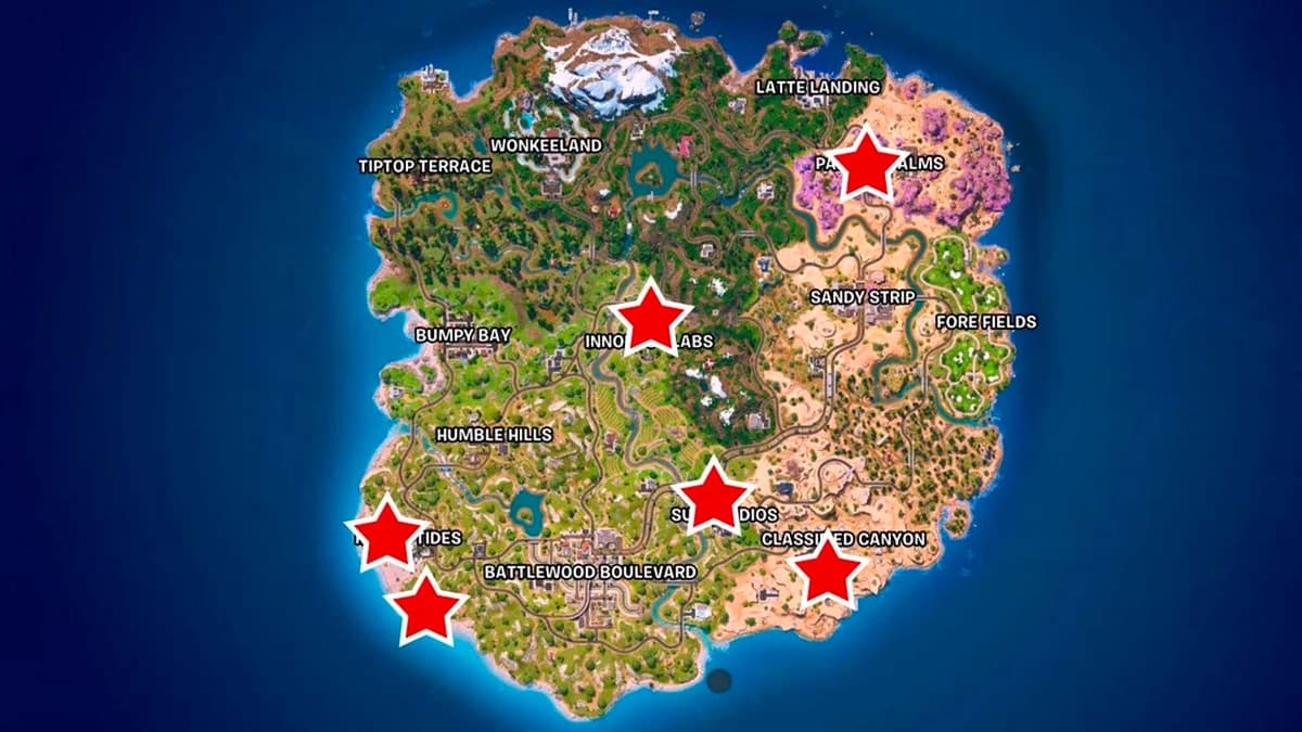 Чаще всего Пляжник здоровяк встречается в локации Зыбкий залив на юго‑западе карты. Но он также может появиться юго‑восточнее Разорённых течений, в Петле Про, на Раскрашенных пальмах, в Секретном каньоне и у студий Sus. Идея простая: за одну катку пробегай цепочку из нескольких этих мест — и шанс встречи сильно возрастёт.
