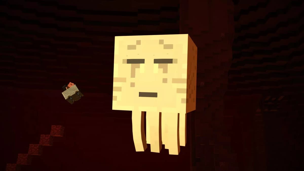 Гаст — это летающий враждебный моб, который обитает исключительно в Незере. Он огромен: его хитбокс занимает 4x4x4 блока, что делает его одним из лидеров по величине в игре после дракона Края. У него девять свисающих снизу щупалец, а глаза и рот закрыты, словно он вечно спит. Но не обольщайся — глаза и пасть раскрываются ровно в тот момент, когда он замечает тебя, выплёвывая огненный шар.