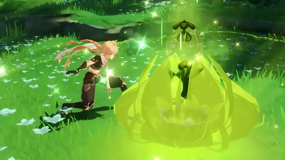Взрыв стихии | Пригибающий траву ветер | Создаёт светильник лотоса, который наносит Дендро урон по площади и может менять свойства при контакте с Гидро, Электро или Пиро |