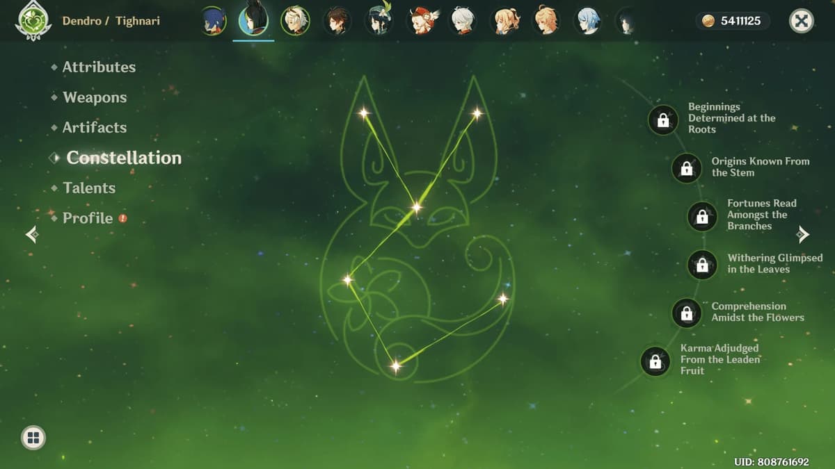 Увядающее скопление — С6 | Даёт 12% бонус Дендро урона и ещё 12% урона связанного элемента |