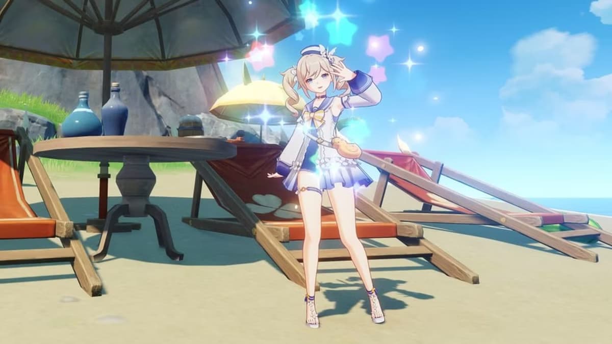 У Барбары этот костюм прям в тему: она и так «идол», а тут ей дали сценический летний образ. Он яркий, лёгкий и хорошо смотрится даже на тёмных локациях — не теряется.