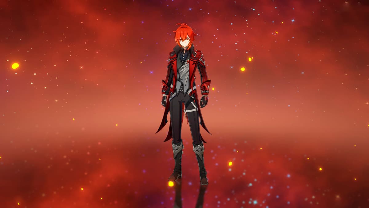 Главный «эксклюзивный» костюм в списке. Он дороже и ощущается богаче: больше деталей, более цельный образ, и в целом Дилюк выглядит не как владелец таверны, а как персонаж из отдельного трейлера.