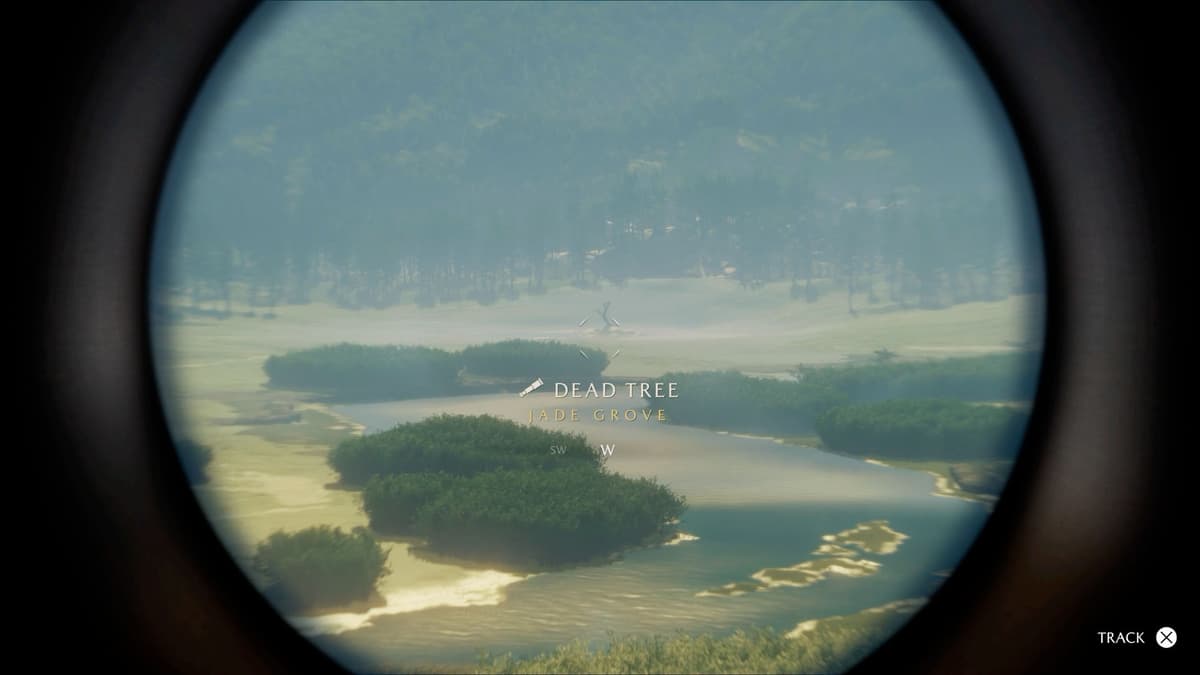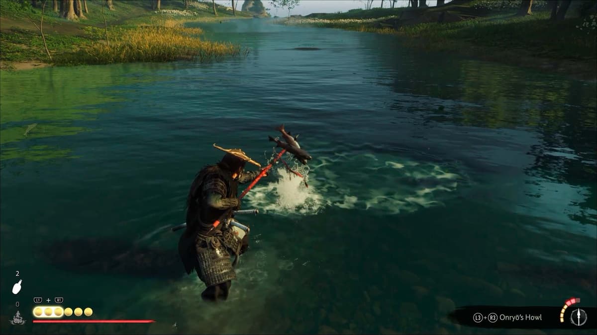 Ещё момент: нажми R3, чтобы переключать вид камеры Дикие места Эдзо – широкий с кино‑полосами, широкий без полос и приближенный с более резким поворотом. Приближение помогает в лесу и при охоте.