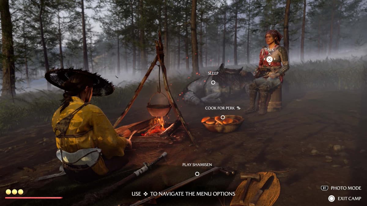 Твой последний лагерь автоматически становится точкой быстрого перемещения. Открой карту, найди иконку и жми «треугольник» – ты в лагере. Во время отдыха можно готовить баффы, болтать с напарниками, проигрывать найденные мелодии или просто перематывать время к утру/ночи.