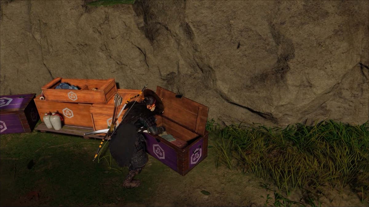 Почти всё, что видишь у дороги, можно подобрать, не спешиваясь: травы, сакэ, материалы, даже афиши с розыском на досках. Под исключение попадают крупные сундуки – их открывай, слезая с лошади.