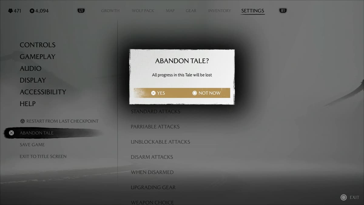 Застрял на сюжетном боссе? Открой настройки и выбери «Покинуть рассказ». Игра поставит чекпоинт у входа в бой, откатит тебя в открытый мир, а когда вернёшься – начнёшь снова прямо у босса. За это время можно подкачать снарягу, выбить новые техники, докупить баффы и закрыть пару лагерей. Это не «чит», а встроенная механика, чтобы не сгорать на одной точке.