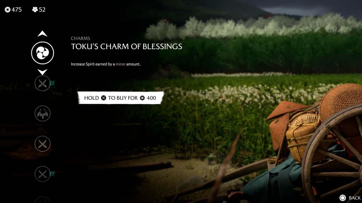 Готовь 400 монет: чарм берётся только по полному ценнику. Покупаешь амулет Благословение Току — и сюжет двигается дальше.