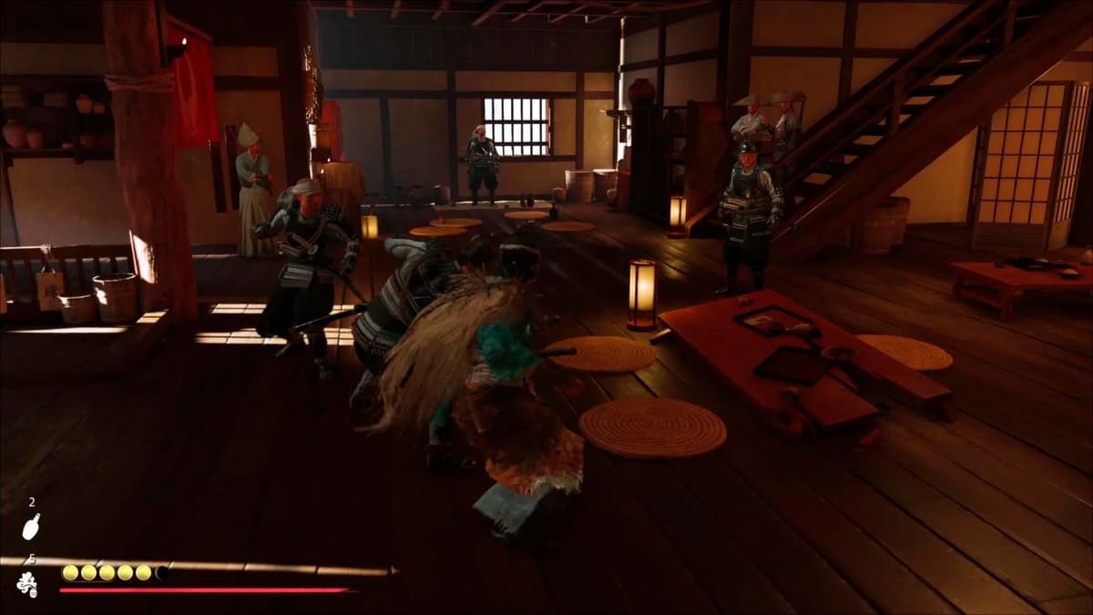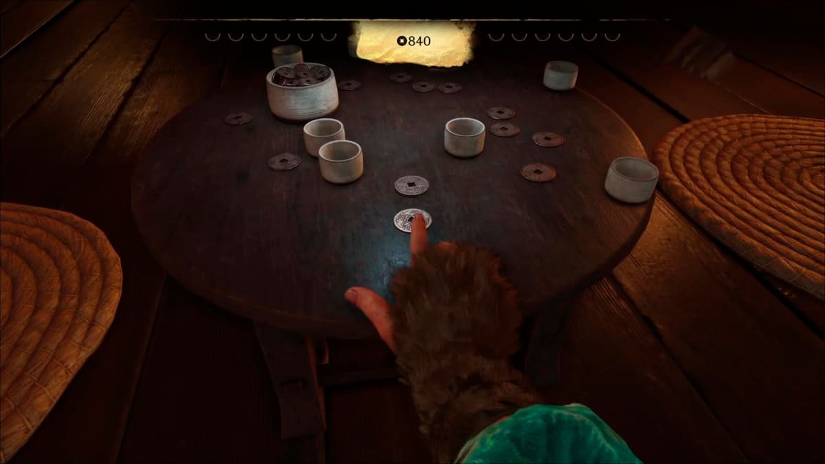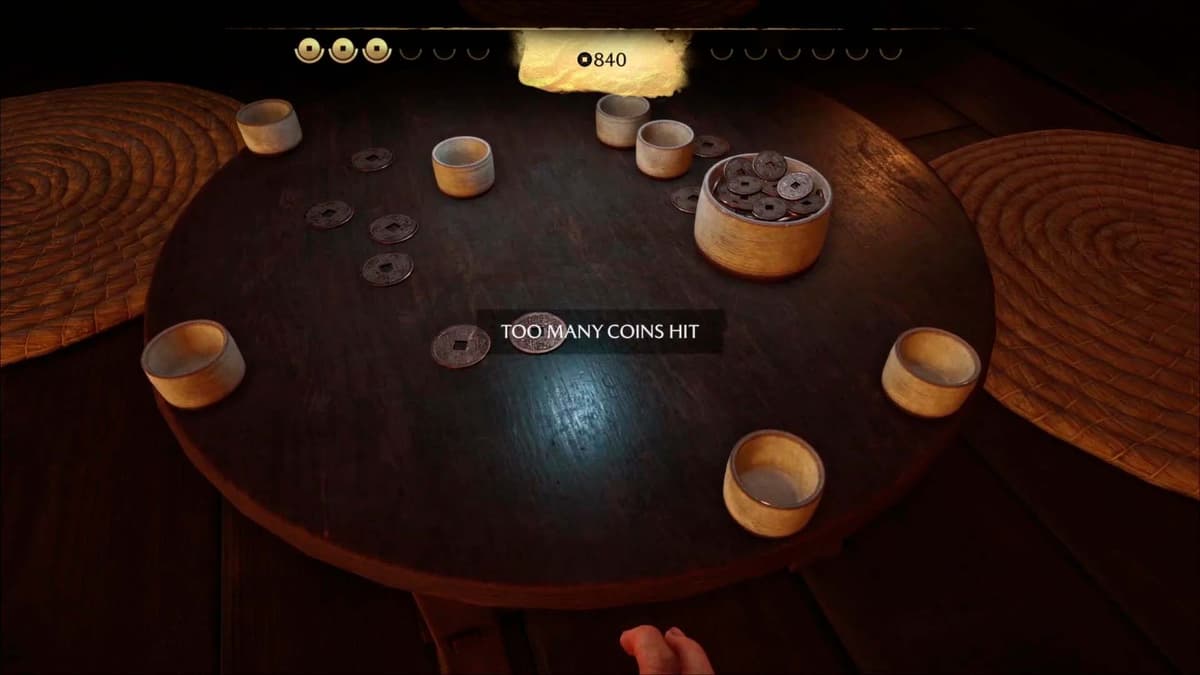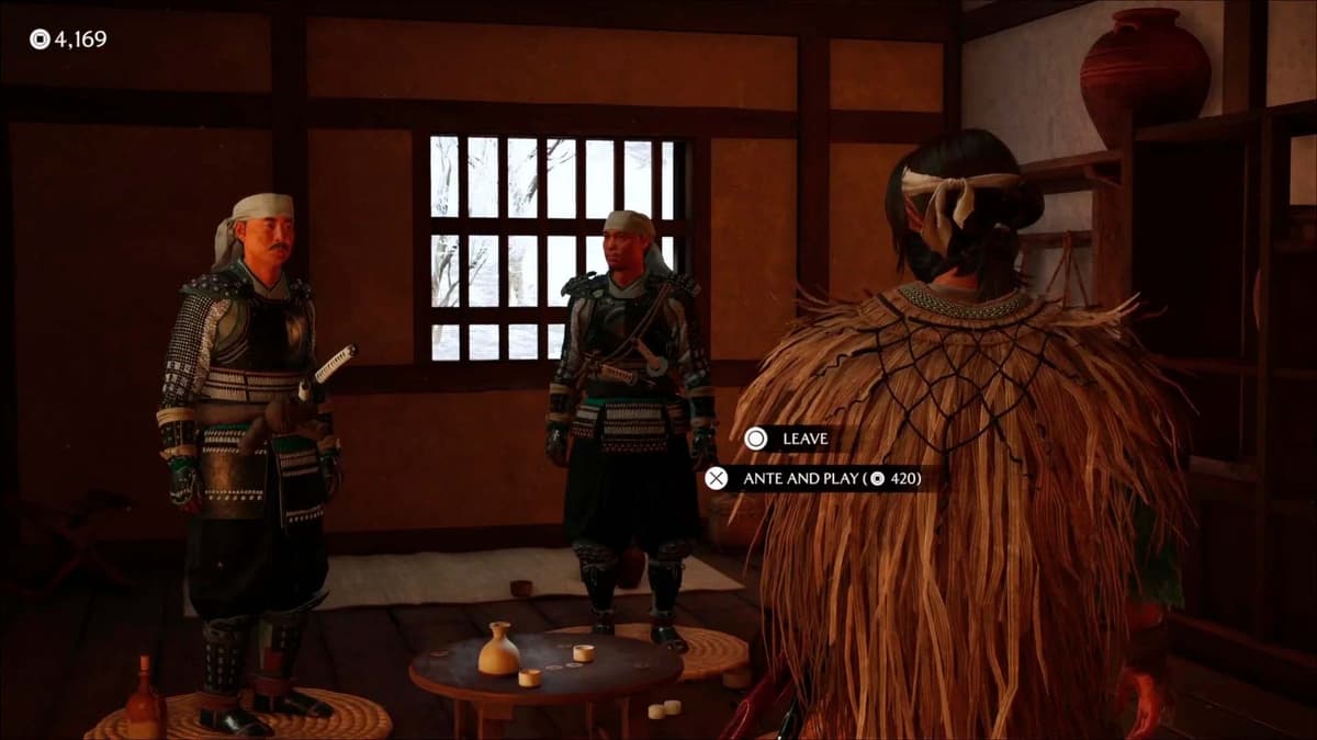 Запустится ролик: Ацу беседует с хозяйкой заведения — та упоминает, что в округе окопались самураи клана Мацумаэ, и вскользь предлагает сыграть в игру дзэни хадзики (традиционные «монетки»).