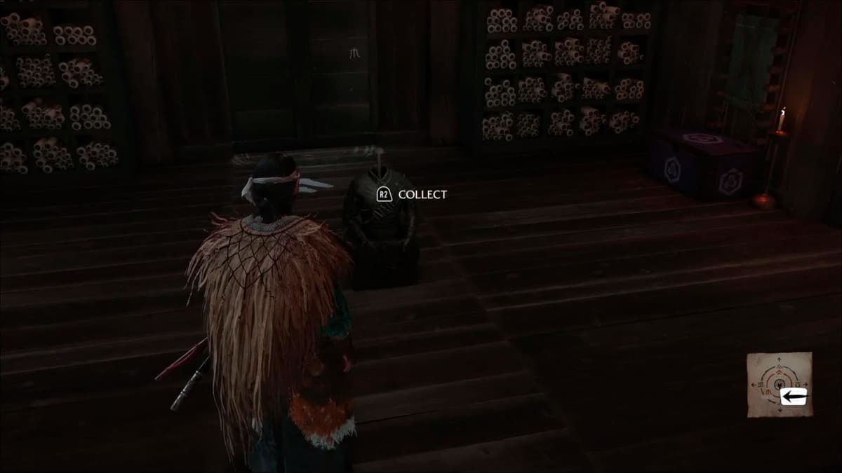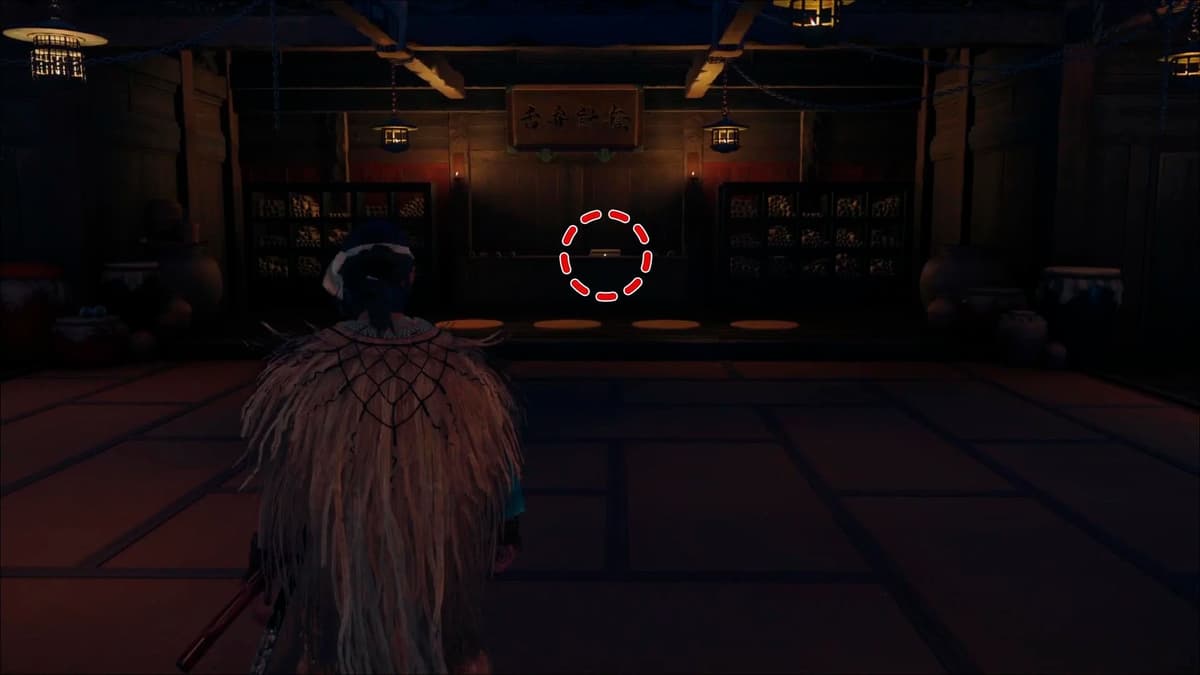 Если всё сделано верно, рядом с центральной статуей упадёт верёвочная лестница. Поднимайся наверх и заходи в здание. Внутри тебя ждёт награда – броня «Послушника Девяти Хвостов». Похоже, ты прошёл базовое испытание и заслужил этот трофей! Не забудь обыскать и большой сундук в углу.