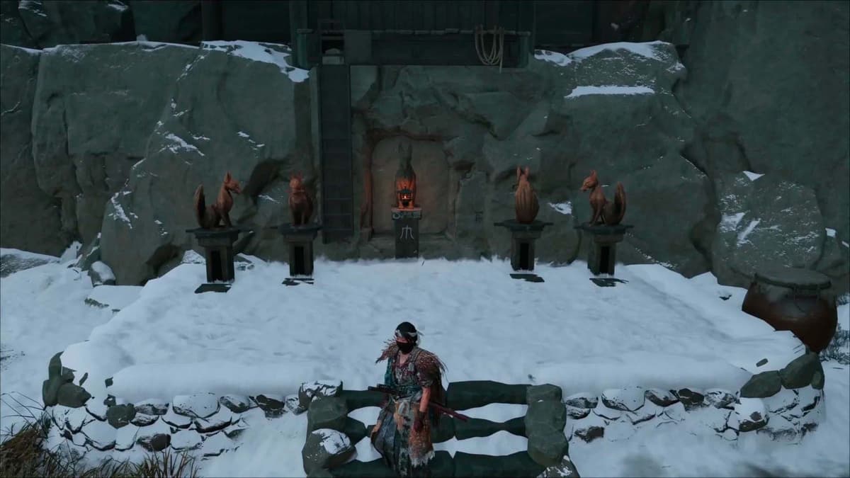 Следуй за Оюки верхом – ехать недалеко. Вскоре вы прибываете к небольшому святилищу. Поговори с напарницей. Она рассказывает, что некоторые верят в то, что Кицунэ обладает мистической силой, и пытаются задобрить его дарами в таких вот священных местах. План прост: оставить здесь подношение, подождать, пока придут люди Кицунэ, и проследить за ними к логову.