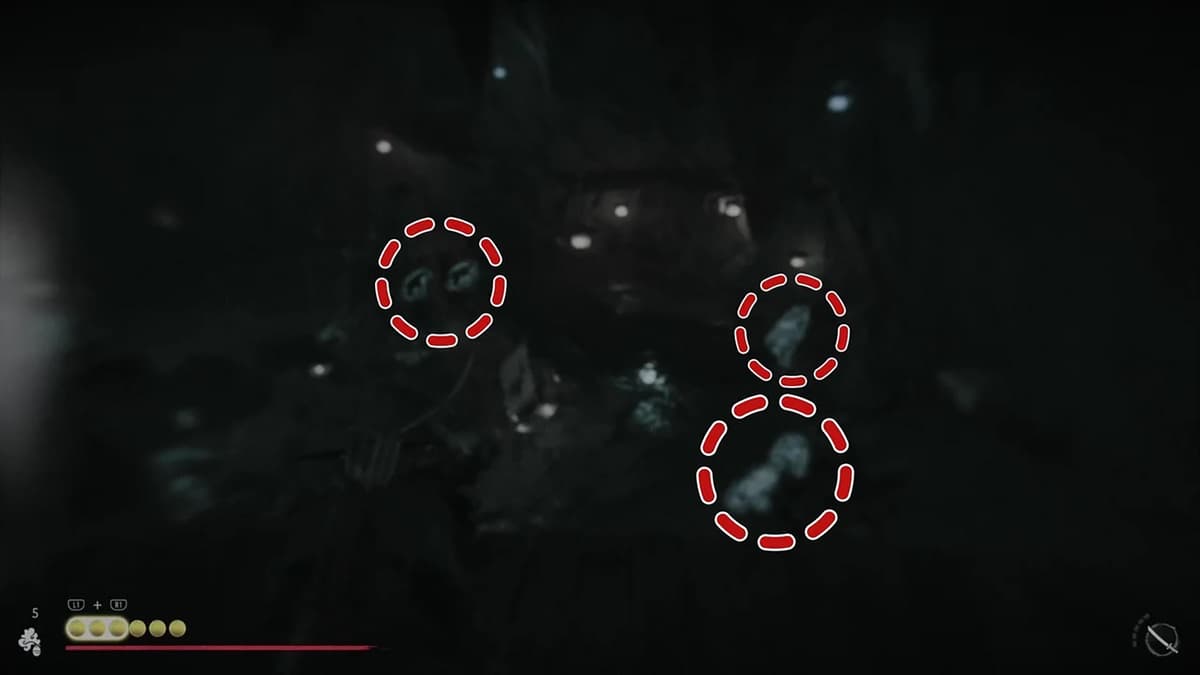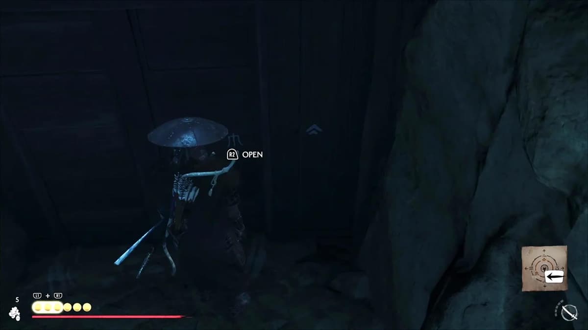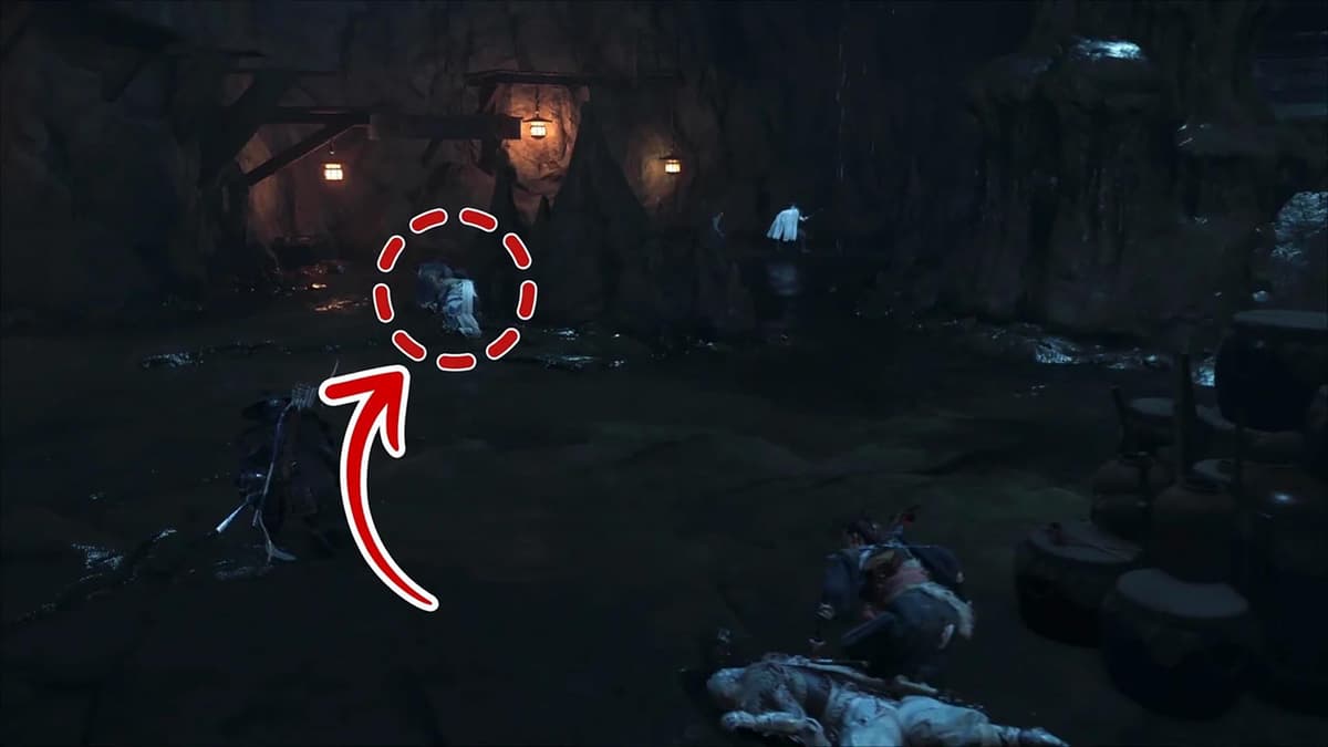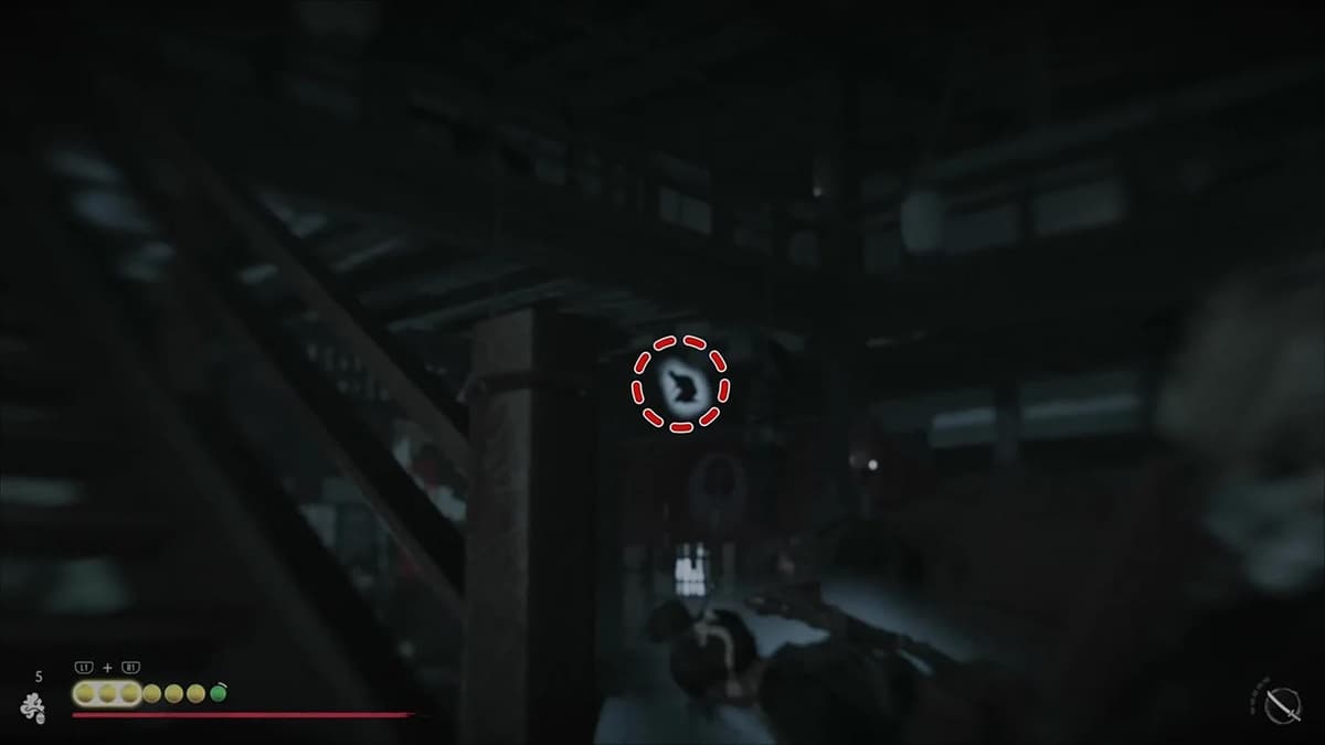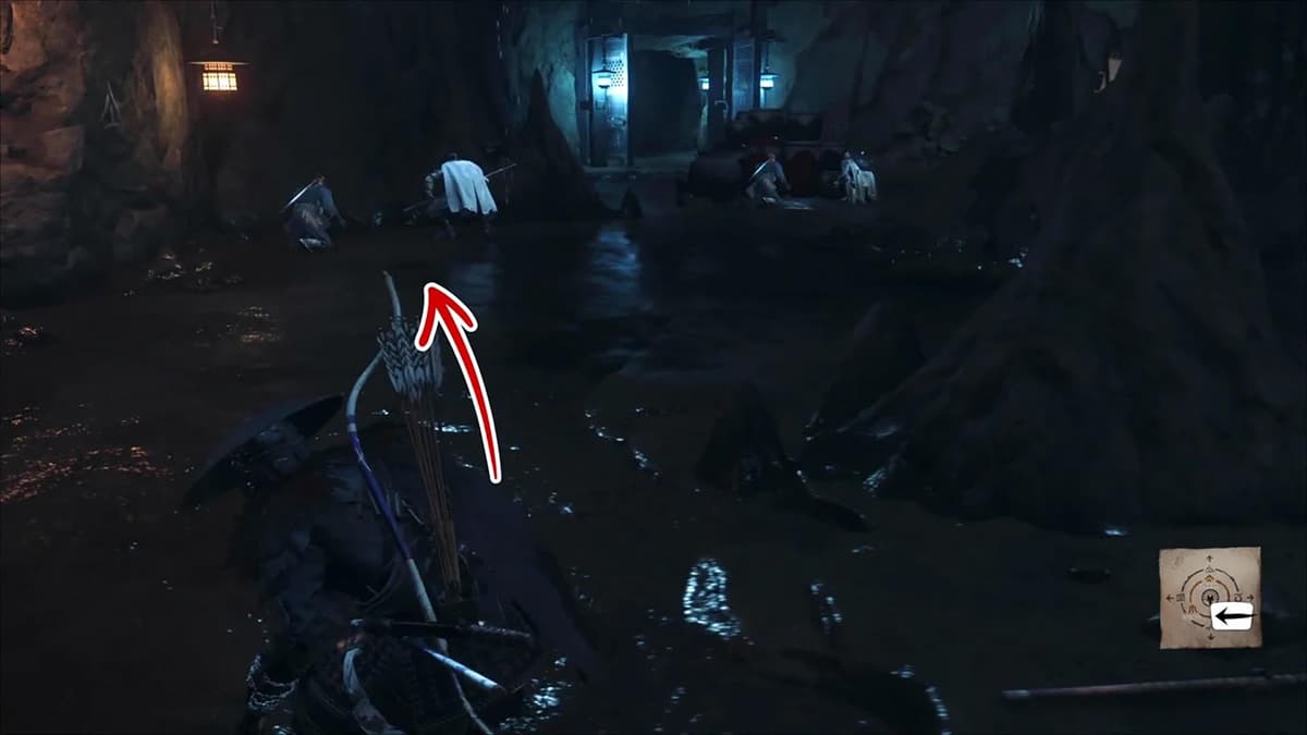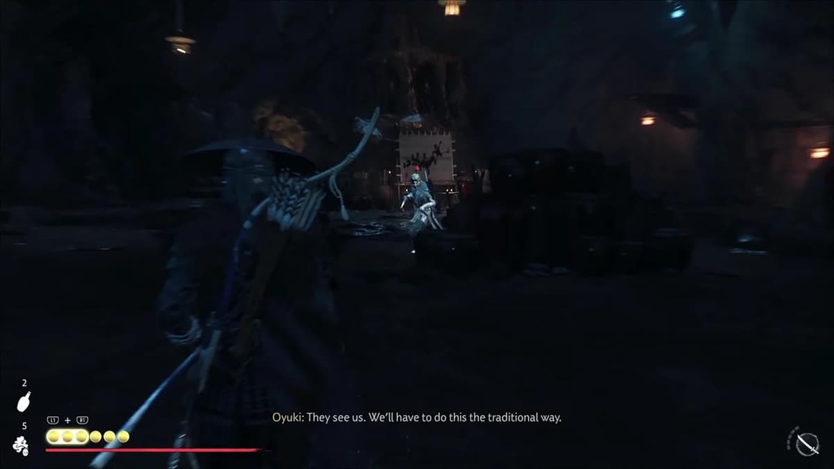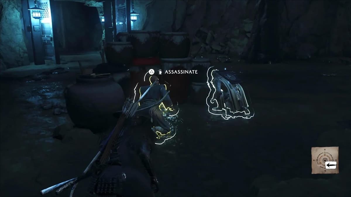 Присядь и нажми R3, чтобы прислушаться и обнаружить синоби: все они смотрят на дверь, из которой вы должны были выйти, если бы не пошли тайным путём.