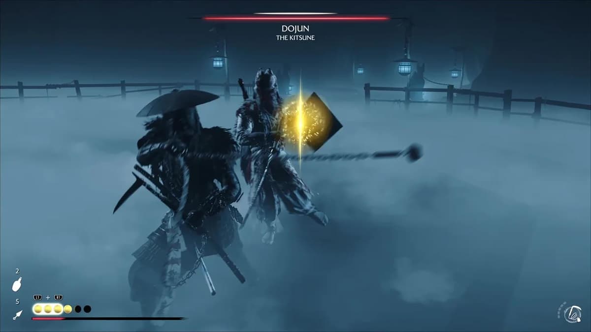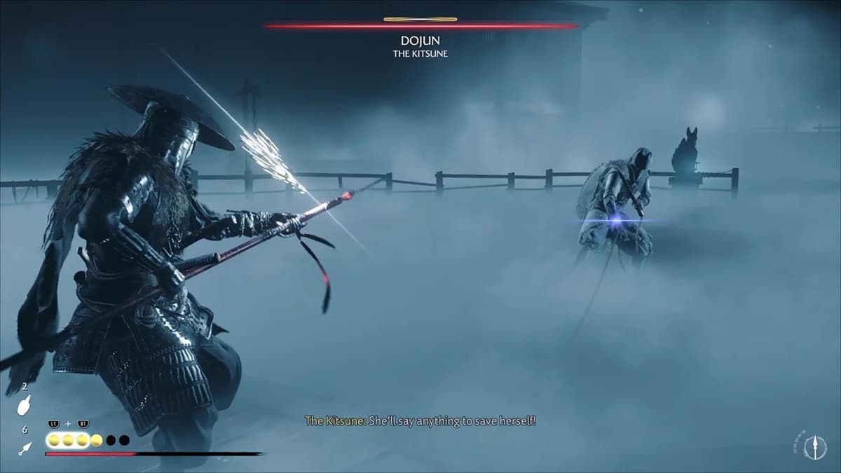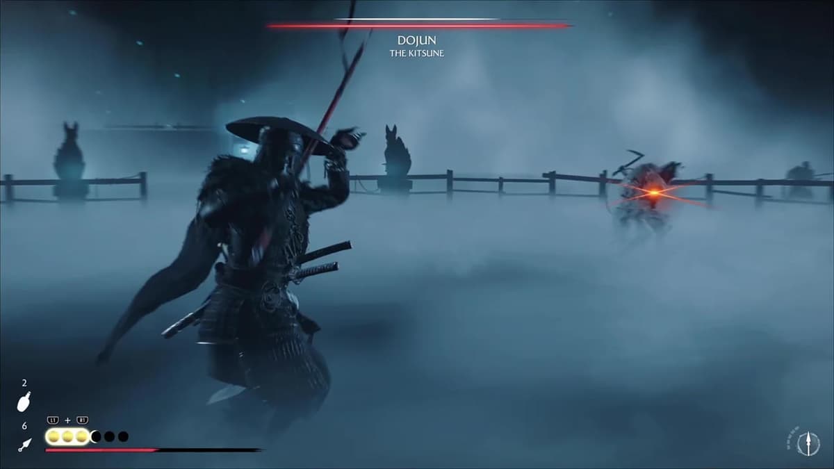 Когда Кицунэ проводит тройное комбо, уворачивайся или парируй. Осторожно: последний удар отразить нельзя.