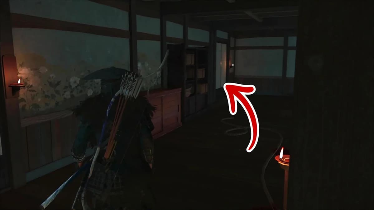 Чтобы скрытно зачистить следующую комнату, пройди через секретную дверь за статуей лиса. Этот путь приведёт к выходу над комнатой, забитой бойцами врага.