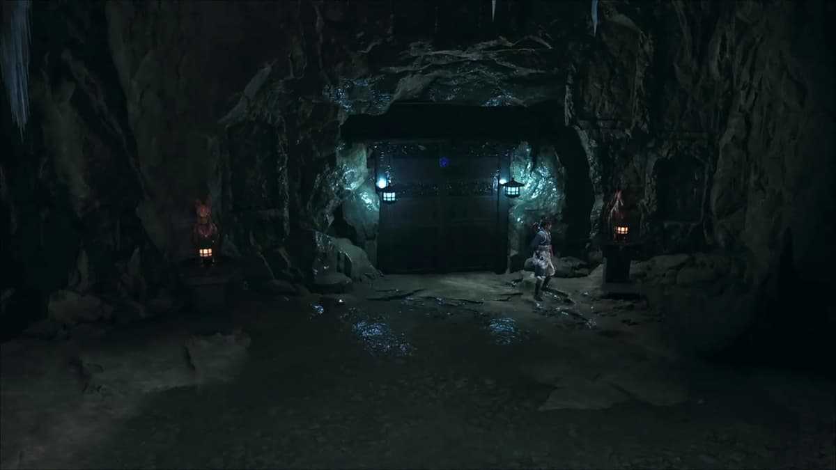Вот только после малейшего вращения они почему-то возвращаются в изначальное положение. Оюки предложит Ацу повернуть их вместе: иди к левой статуе, а Оюки займётся правой, после чего дверь откроется.