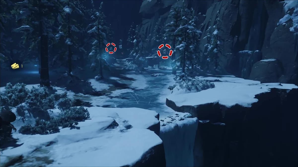 Вскоре вы доберётесь до замерзшего водопада, под которым находится вход в убежище, прикрытый ветхими досками. Сломай их с помощью крюка-кошки и проберись внутрь.