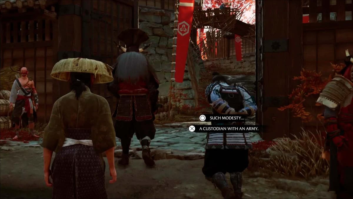Ацу маскируется под наёмницу и ведёт «пленного» к воротам. Дорогу преграждает тяжело бронированный рейдер Они. Он подозревает, что ты и есть та самая незнакомка, которая прикончила Змея, и задаёт вопрос. Будет два варианта ответа — что ни выбери, сюжет не меняется. Рейдер пропускает вас внутрь.