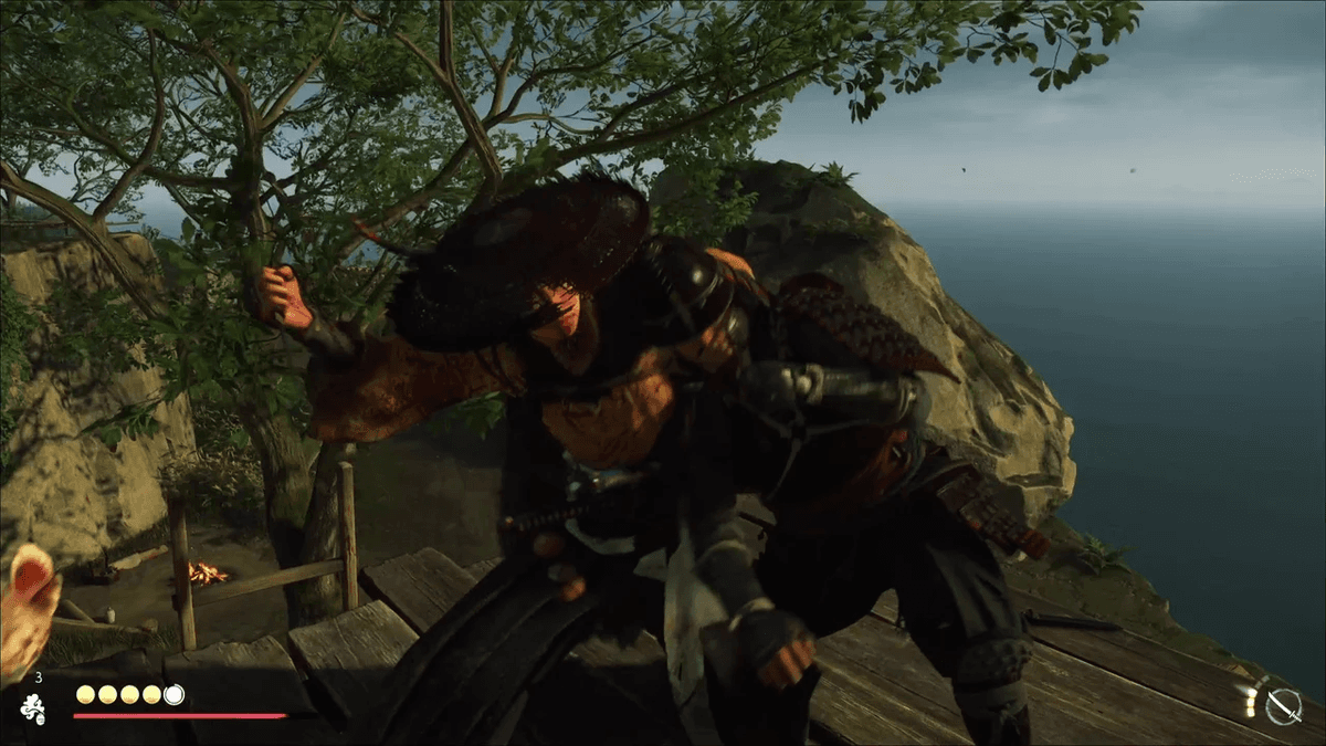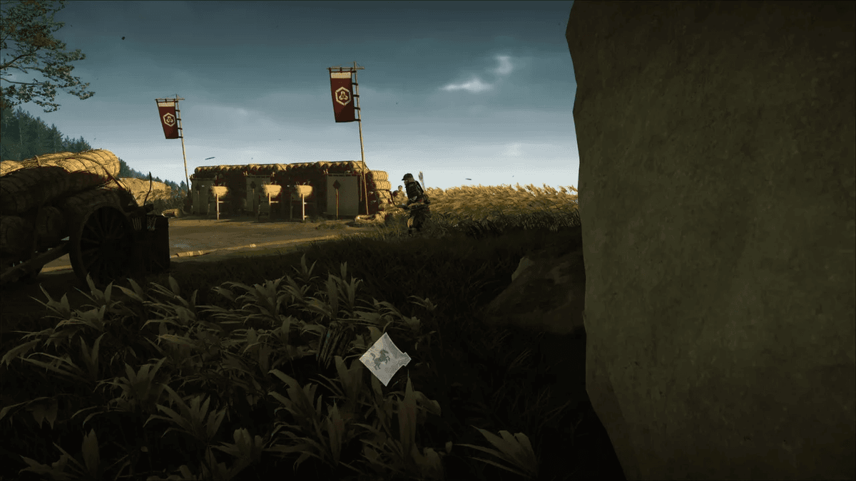 Если ты уже накопил заряд Воя Онрё, самое время использовать его, чтобы расправиться с отрядом впереди. После этого обследуй палатку неподалёку и иди дальше.