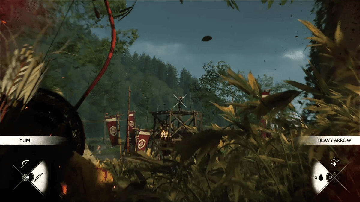От главного входа двигайся вглубь к охраняемому внутреннему дворику. Для начала пройди около стены, убивая охранников на пути, а затем поверни направо от входа и спустись по тропинке к берегу — эта дорога ведёт к наблюдательной вышке. Прокрадись к ней, убей врага наверху, а затем заберись наверх и расстреляй остальных людей Сайто из лука. Когда сделаешь это, отправляйся на стрельбище впереди.