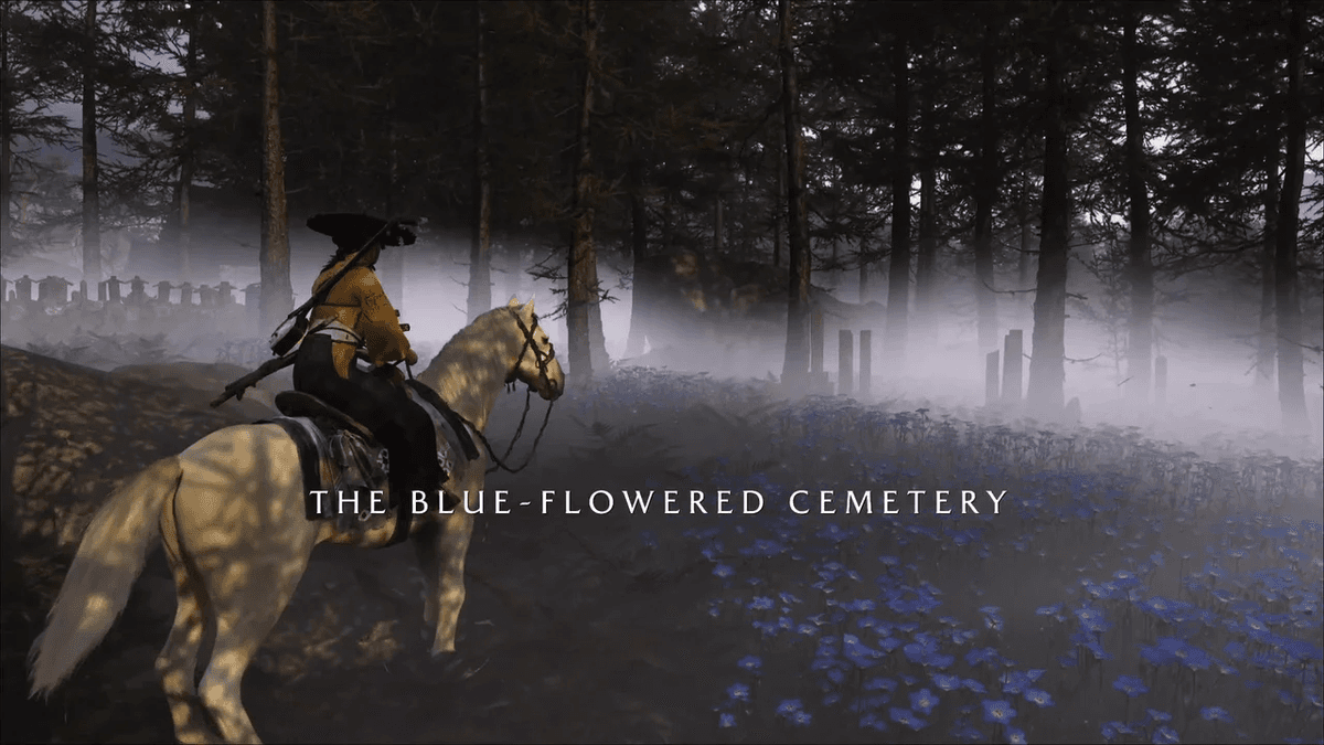 Переместись в ближайшее открытое поселение, перейди реку Ётэй и двигайся вглубь рощи, пока не наткнёшься на синие цветы, ведущие к кладбищу.
