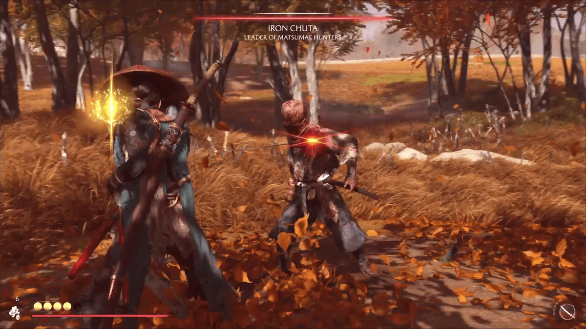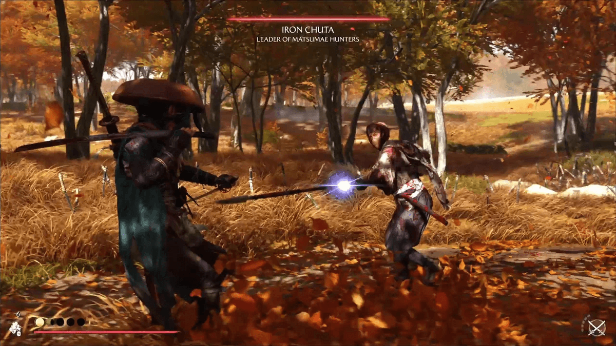 Противник Ацу — тот самый воин, гнавшийся за самураями, которым ты помог в квесте «Отчаянные меры». С тех пор он стал заметно сильнее: действует агрессивно и наносит много неблокируемых атак катаной. Чтобы контратаковать, уворачивайся от них и наноси серию ответных ударов.