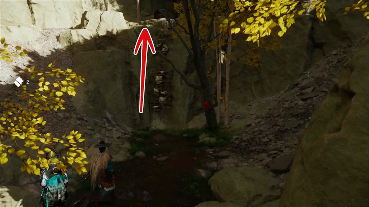 Поднимайся, забери лут на пне на верхней кромке — и двигайся к выступу над поляной. Там рейдеры Они готовят костёр. Увы, Ацу и Китамори не успевают — пленников уже сожгли.