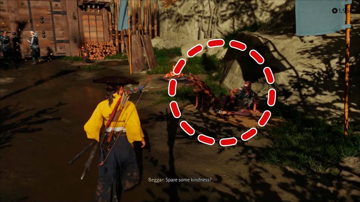 Пройди испытание на скорость, затем открой вкладку снаряжения и надень Шлем Клана Мацумэ. Подойди к самураю и невозмутимо примерь «его» шляпу. Стыд и позор бедолаге обеспечены.