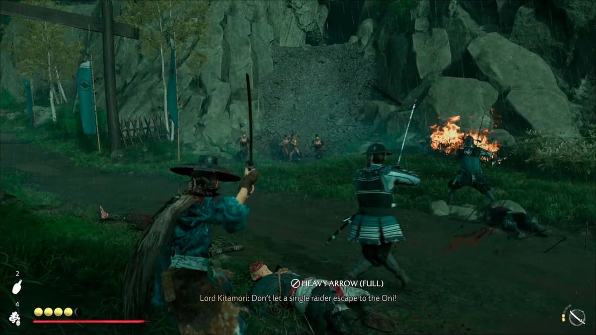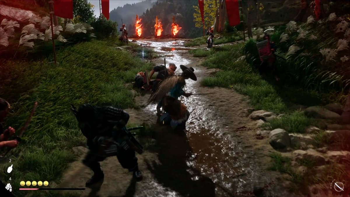 Важно: вместе с рейдерами на Исикари ты часто будешь встречать горящие клинки. Блок и парирование работают как обычно, но если тебя полоснут, Ацу загорается и получает урон‑со‑временем. Погаси огонь перекатом (умение открывается у Алтаря для размышлений).