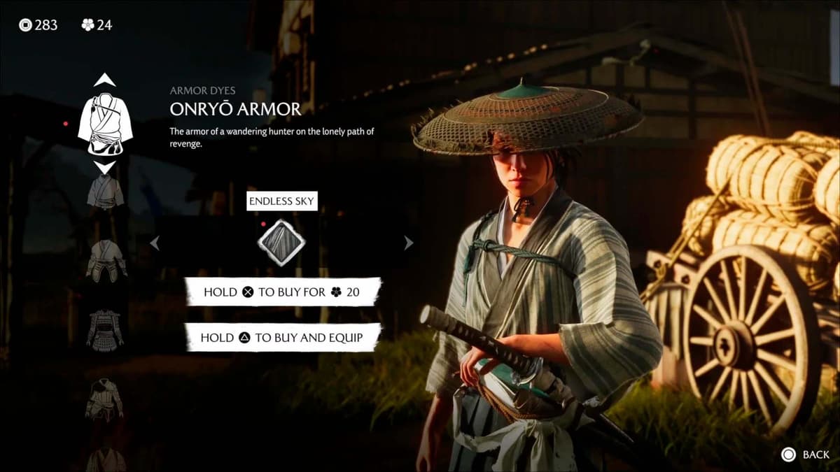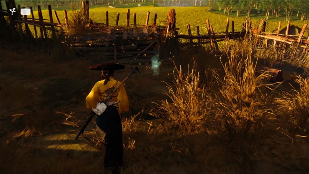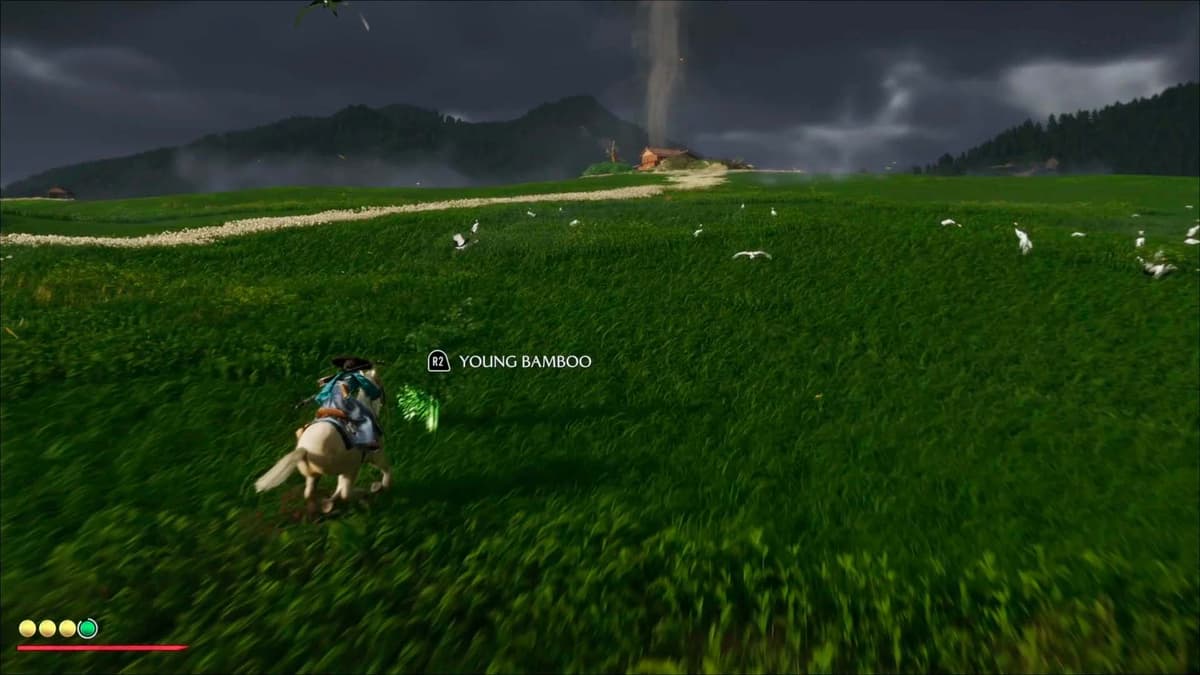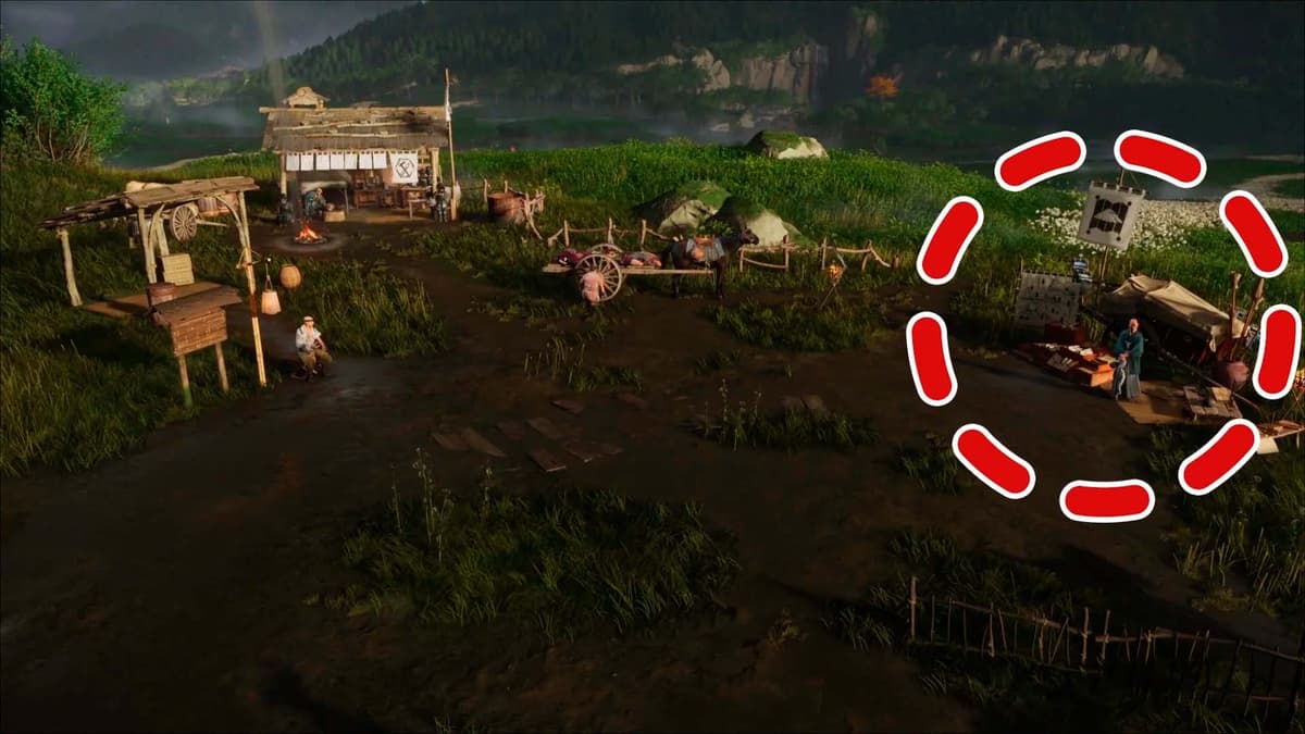 Пока едешь, подбирай ресурсы: молодой бамбук, цветы, руду. Они подсвечиваются лёгким всполохом: подъехал – жми R2. Эти штуки идут в крафт метательных боеприпасов и сгодятся для обмена у торговцев. Если где‑то просел по ресурсам, вендоры подстрахуют – у них можно закупиться за монеты.