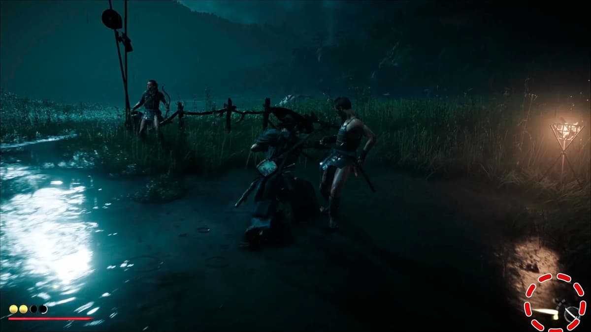 Исабуро попросит найти монаха Гэссё. Открой подзорную трубу (вверх на крестовине) и глянь на юго‑восток: огонёк костра у жёлтого дерева. Там старт. По пути слушай лягушек – они как будто «отбивают ритм», ведут к нужной ложбине. Сам Алтарь стоит у воды; камера отъезжает, у Ацу становится ровнее дыхание – игра прямо намекает сделать паузу и отдохнуть.