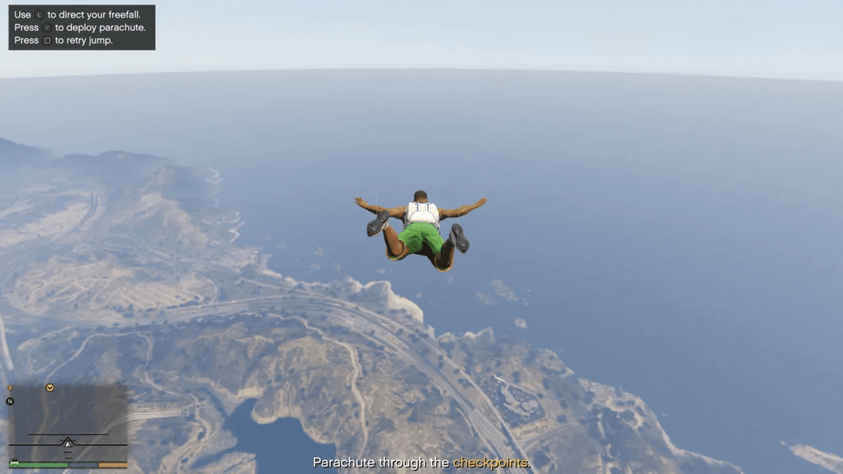 Спрыгни с высокого здания или выпрыгни из вертолёта и нажми A.