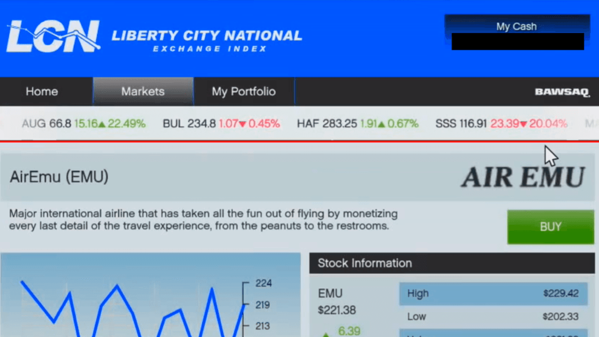 Чтобы знать, куда инвестировать, следи за событиями сюжетных миссий и квестов Лестера. Например, перед убийством на стройке лучше вложиться в Gold Coast, а до задания «Неприятности с законом» стоит прикупить акции AirEmu. После квеста сразу продай их и реинвестируй заработанное в FlyUS. Затем дождись финала поручения «Сойти с катушек» и избавься от акций по удвоенной цене!