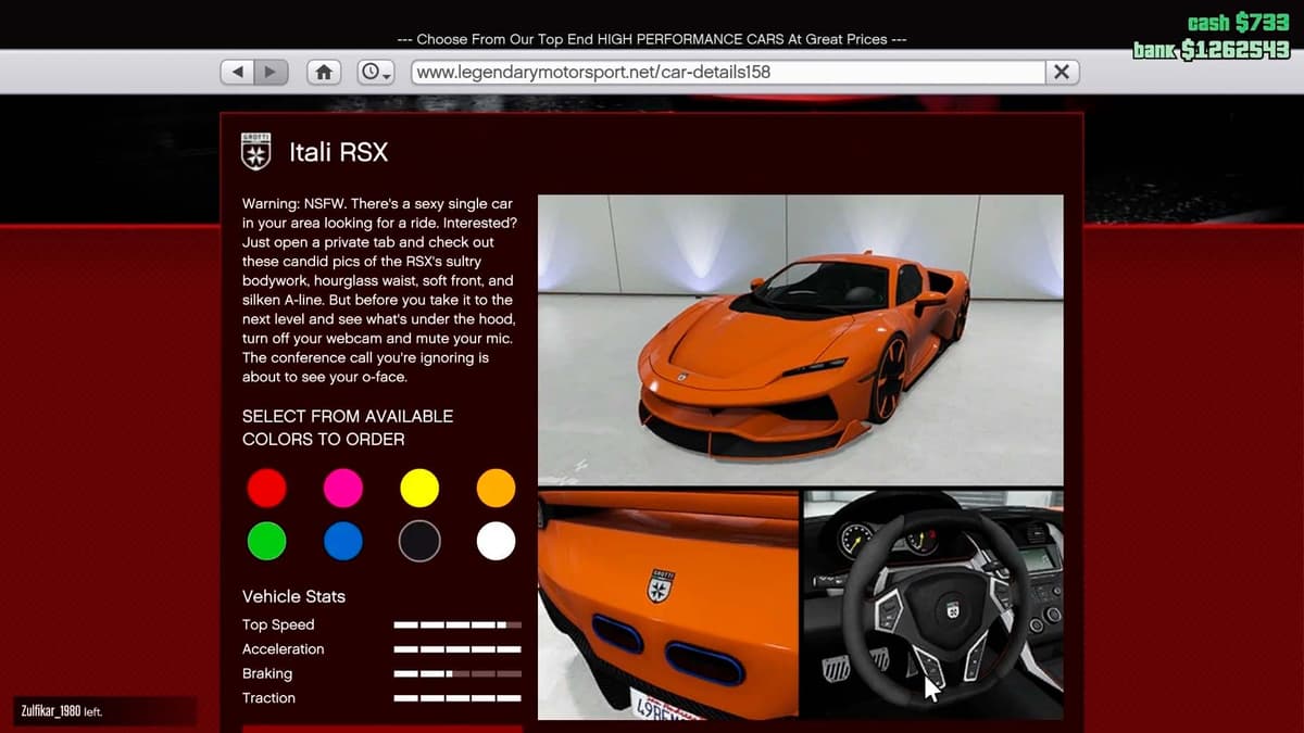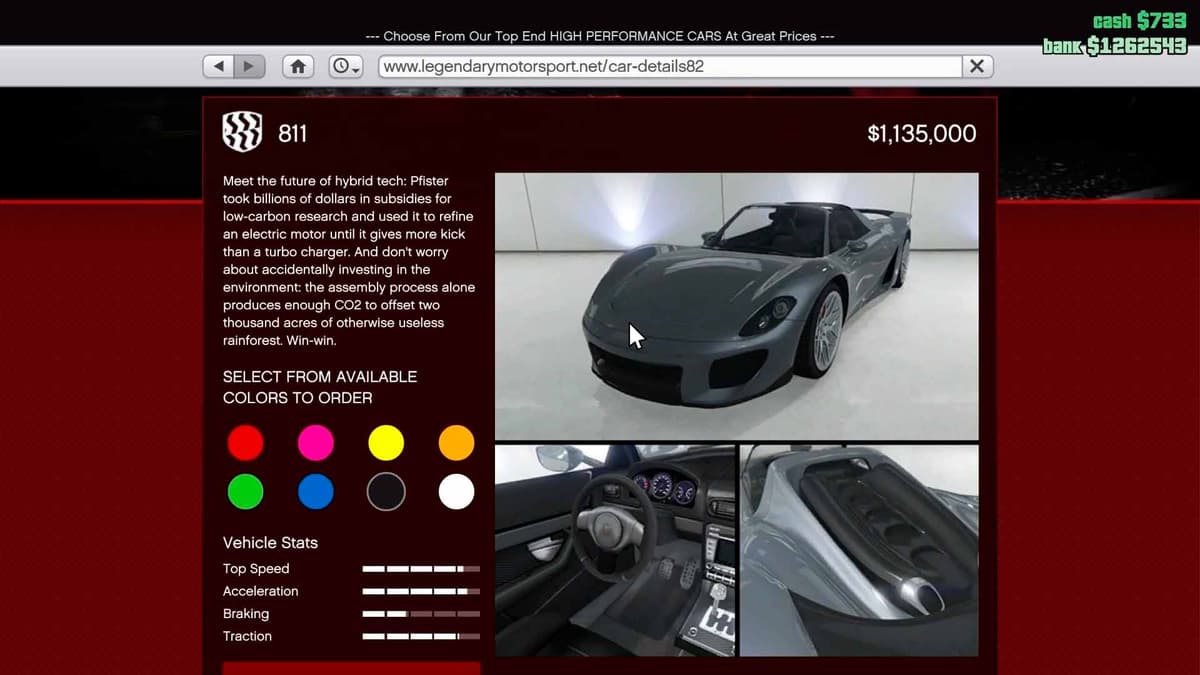 Но есть проблема: ценник. Машина продаётся в Legendary Motorsport за 3 465 000$. Это один из самых дорогих вариантов в игре, так что придётся серьёзно поработать, прежде чем заполучить её в свой гараж.