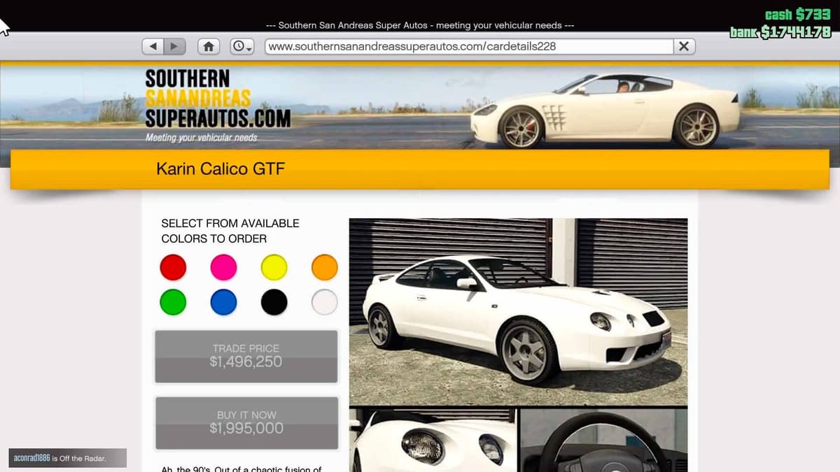 Купить её можно в Southern San Andreas Super Autos за 1 995 000$.