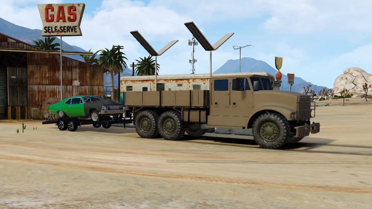 HVY Barracks Semi — тягач, который чаще всего используют вместе с тяжёлыми прицепами, вроде ПВО. Сам по себе он не про стрельбу, а про логистику и атмосферу военной колонны.