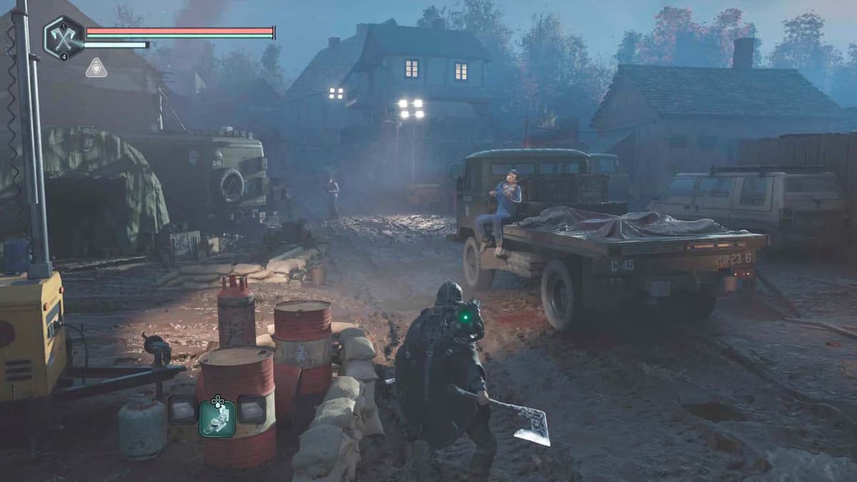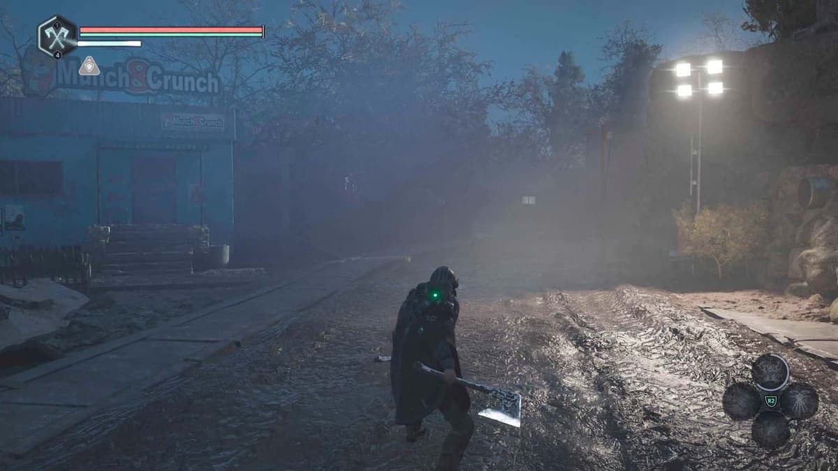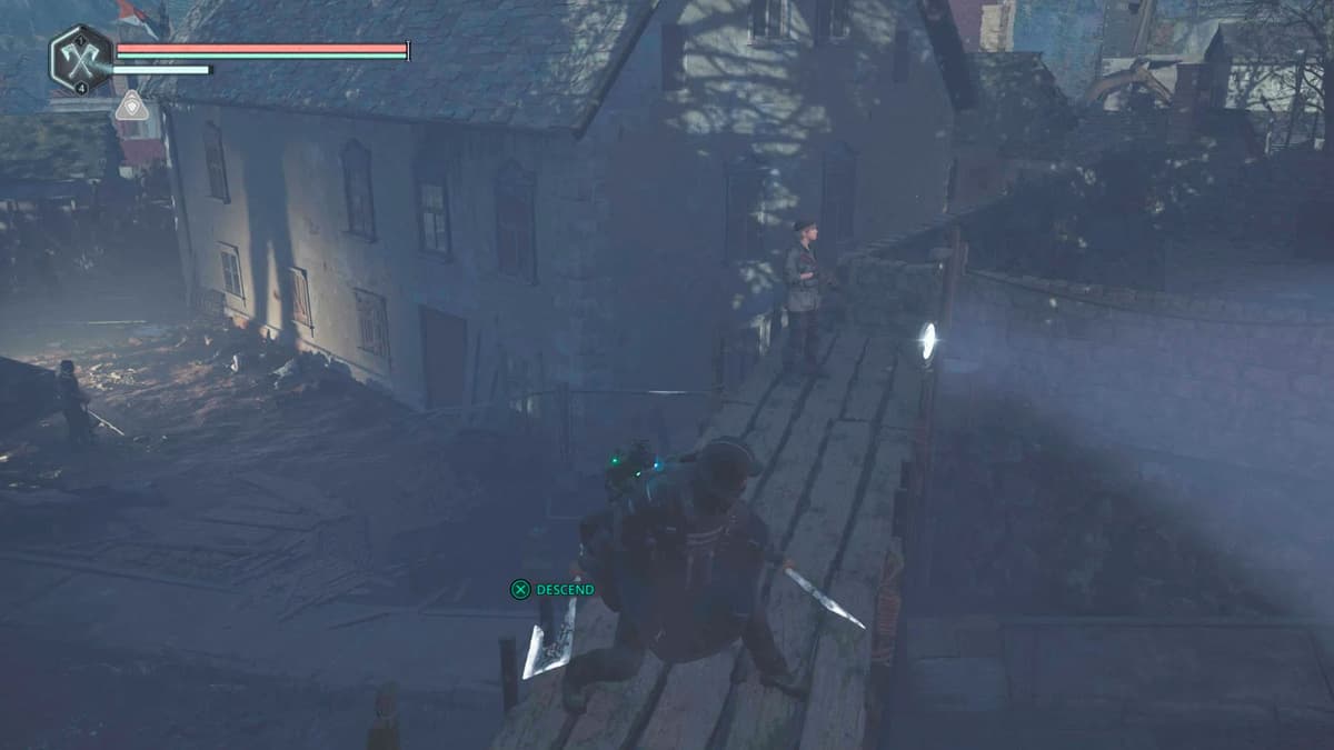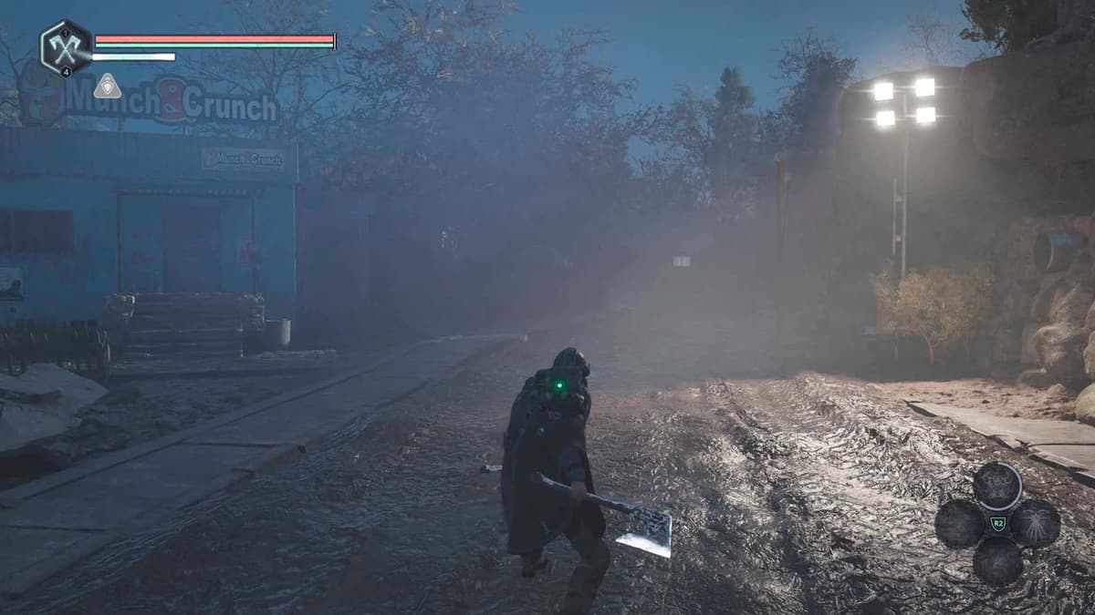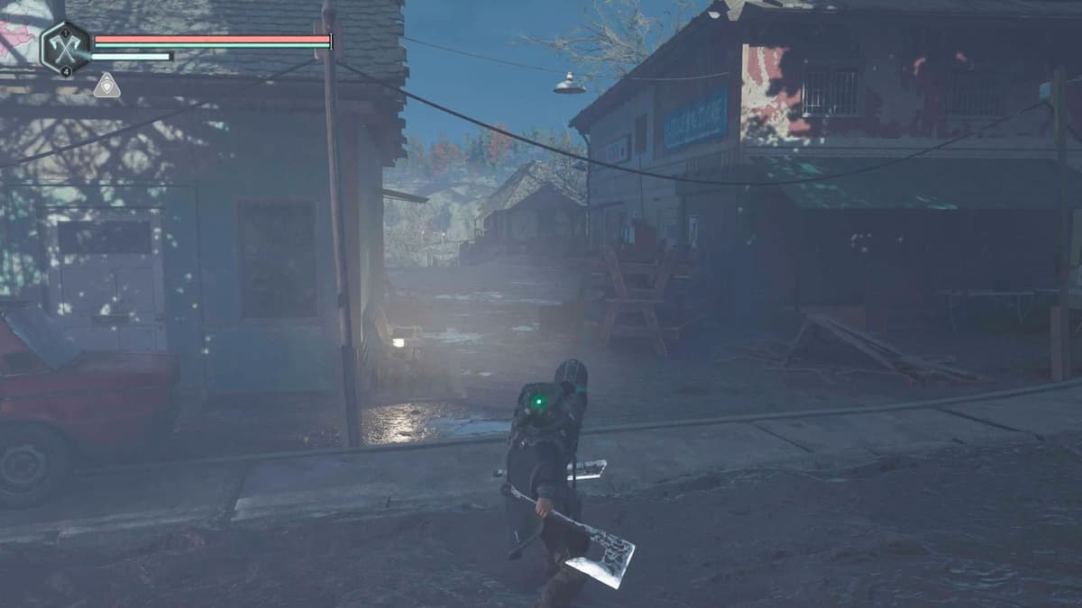 В боевом плане локация коварная: узенькие коридоры во дворах и «полые», любящие возникать из ниоткуда. Держи в уме короткие уклонения вбок и не стесняйся отступать на открытую улицу — так проще контролировать дистанцию. Здесь экшен проверяет не навык боя, а скилл услышать и среагировать.