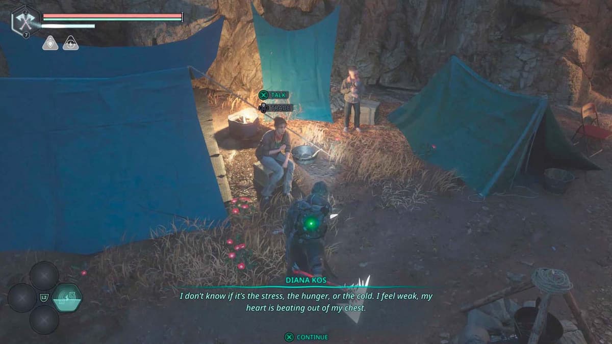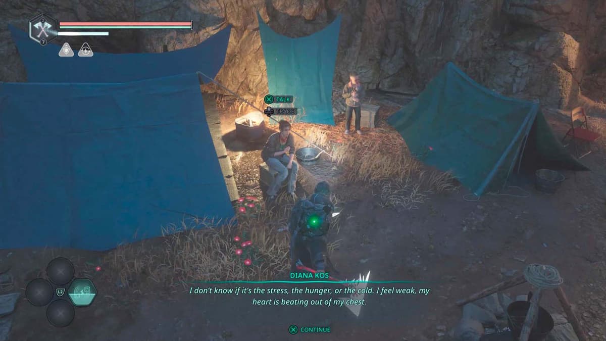 Поэтому оптимальный маршрут такой: сначала открой Хранилище Наблюдателя по сюжету, доберись до лагеря, найди Диану, подними лекарства, верни — и только после этого занимайся «эвакуацией».