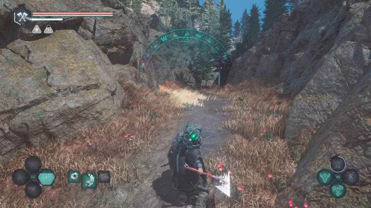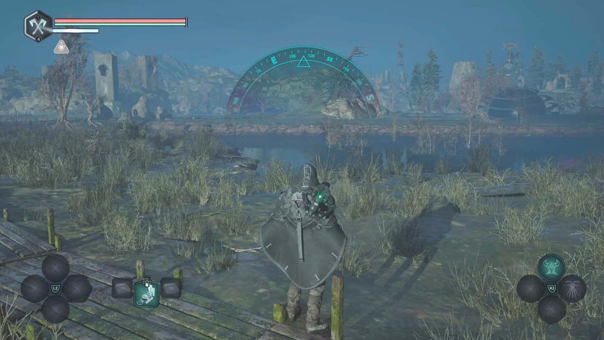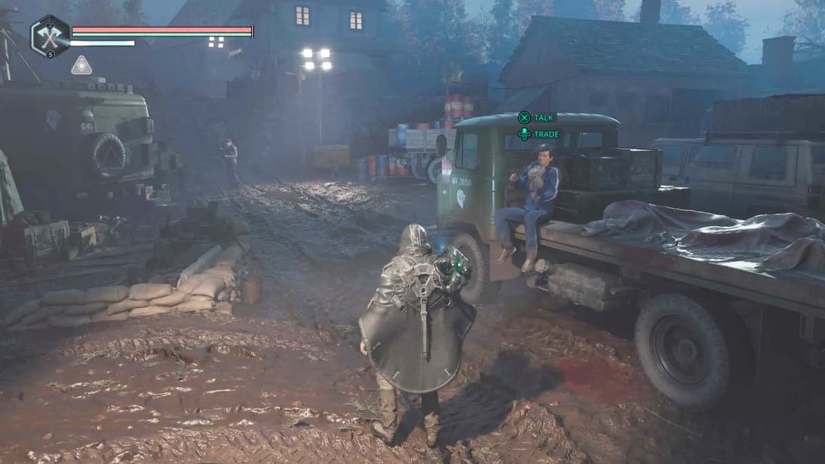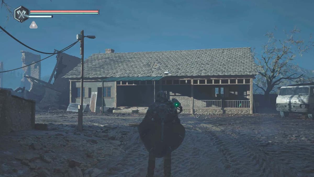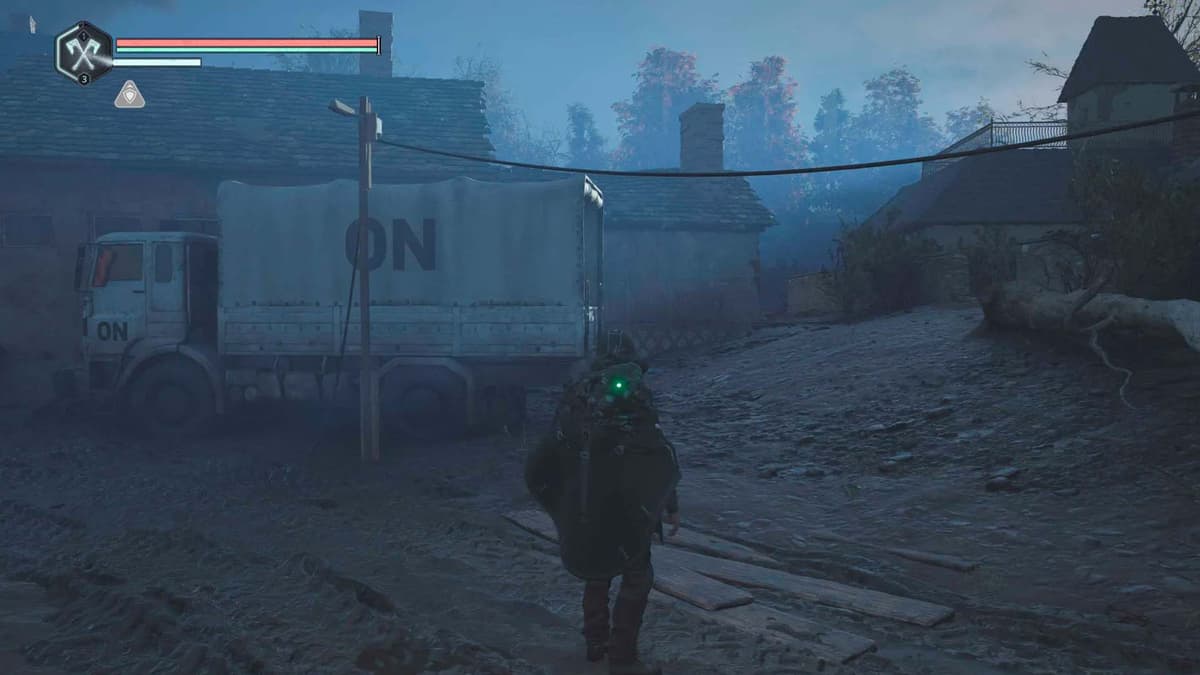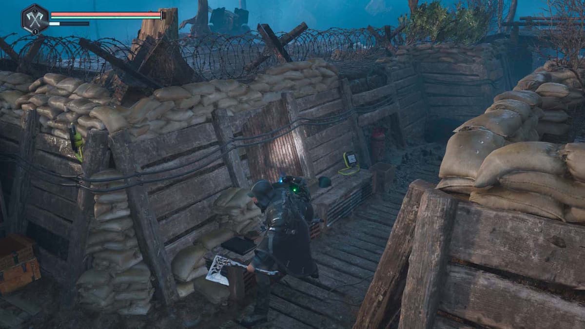 После этого тебя всё равно ведёт главная линия: пройди начальные развалины, забери оружие и дрон, найди ключик от БТР и дай сюжетке довести тебя до траншей. Двигайся, ориентируясь по наклонённым столбам и обрывкам колючки — так выходишь к узкому коридорчику траншеи. Чуть подальше, у правого поворота, хранится интерактив — тут и часы, и письмо владельца, адресованное жене. Если идёшь скрытно, крадись вдоль правой стенки, чтобы не задеть «полых»; если лезешь в битву — помни, что контратака после парирования экономит силы, а лечиться выгоднее импульсом (Healing Pulse), чем бинтами.