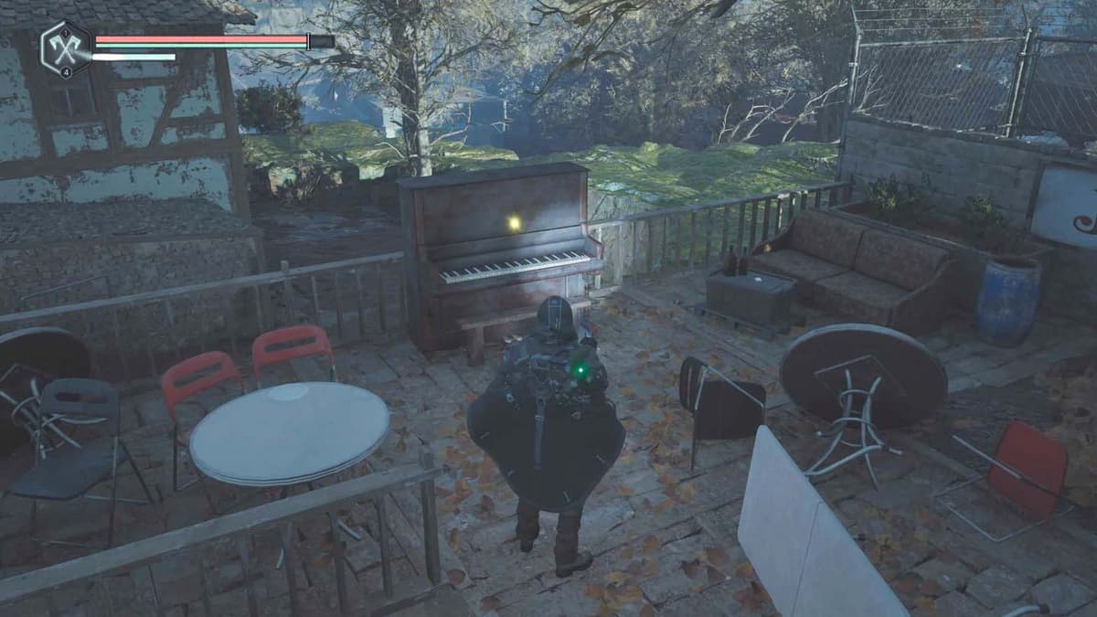 От стартового блокпоста иди на запад до первой преграды, затем сверни направо ко второму, поднимись по лестнице слева, пройди по обходному пути до Little Big Store — кафе рядом, ноты валяются прямо на пианино. Если не замечаешь его сразу, обойди стойку и чекни зал у окна — инструмент иногда «маскируется» подсветкой.