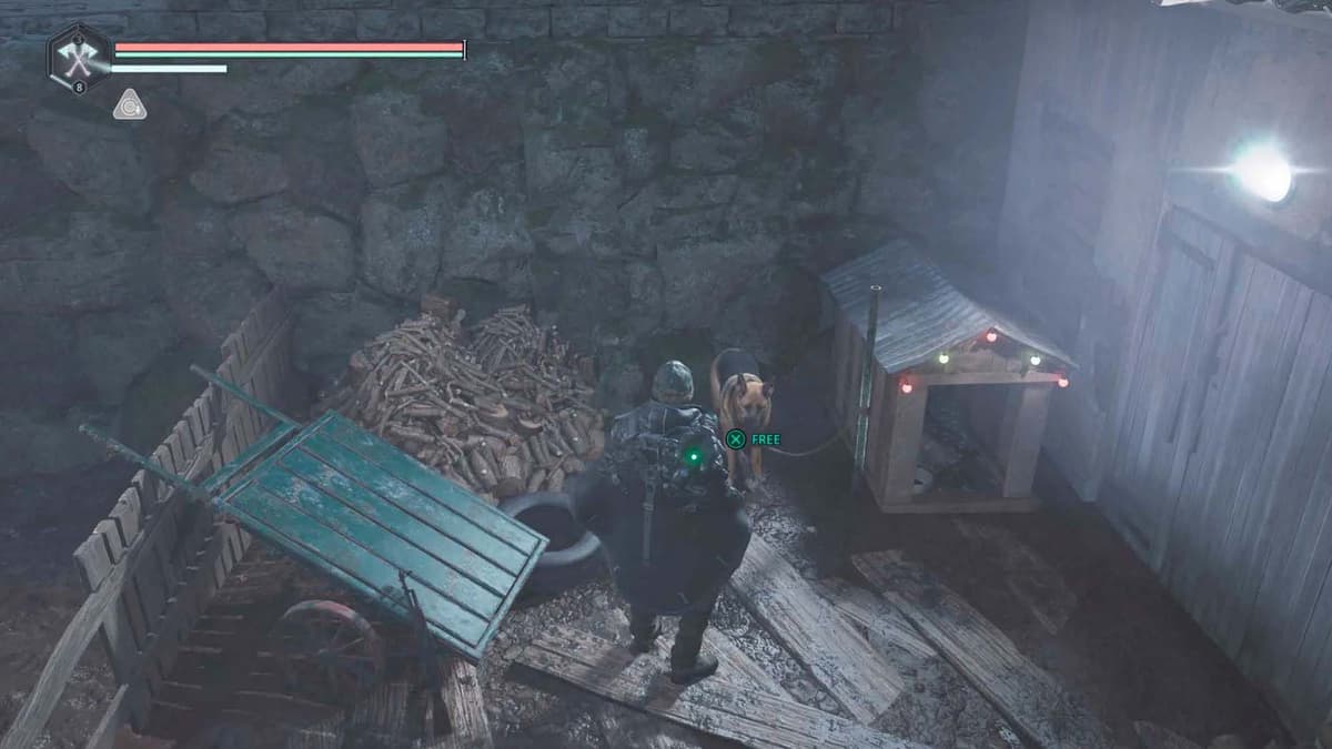 Этот мини-квест тоже ждёт, пока изменится мир. После первой главы в Йове становится заметно тише — военных меньше, блокпосты поникли. Иди в центр города с юга от входа и ищи рядом с солдатом привязанного пса. Макса можно снять с цепи, а его медальон достать себе. Так и начинается «Лучший друг человека».
