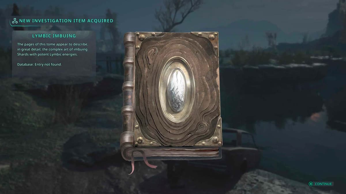 Внутри — диктофонное послание Виталиуса для воспитанника с уроками лимбик-ремесла, а ещё ожерелье с именем Виктора и подарки для тебя: «Лимбик‐топоры‐близнецы», глиф Chromatic Shield и книга Lymbic Imbuing. Топорики — про агрессию вблизи с быстрыми таймингами урона, «Хроматический щит» помогает выживать в стычках с «полыми», а книга анлочит новую ступень крафта у лимбик‐кузнеца.