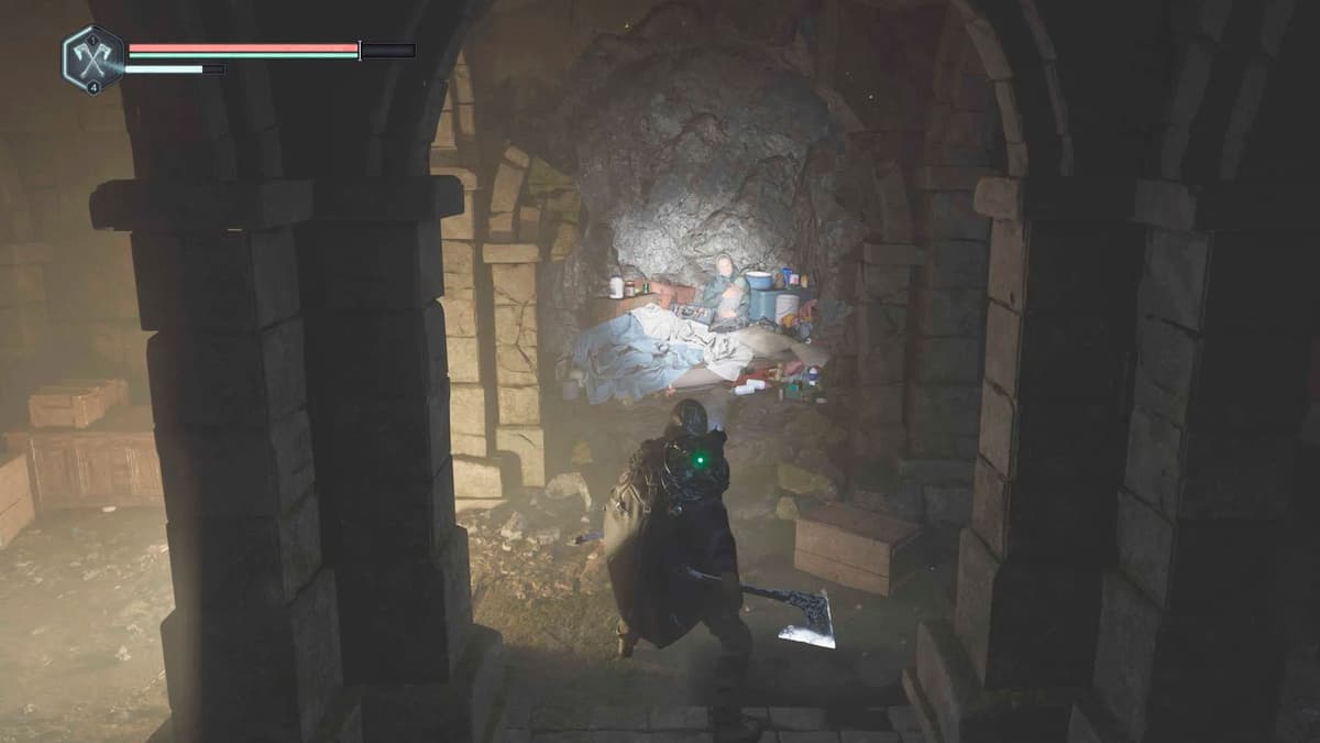 У задней двери — чемодан «Собрать». Внутри – письмо от Камиллы и чётки, оба предмета связаны с девочкой Анной, той, о которой горюет папа. Забираешь связку и несёшь назад — пока мир не пересчитал тайминг Акта. Даёшь отцу письмо и чётки — и отправляешься за вознаграждением. Если затянешь, мужчина начнёт закапывать семью «как получится», а у тебя не будет момента, чтобы вмешаться.