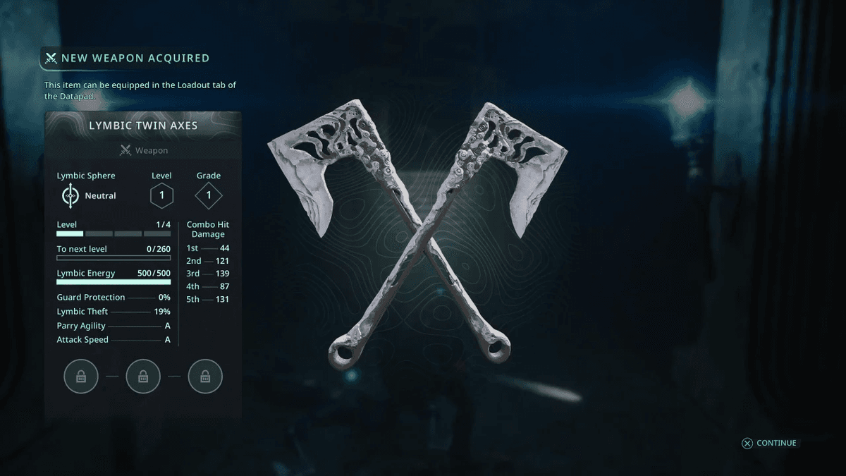 Идеальное оружие для нанесения быстрых серий ударов вблизи. Урона у топориков не очень много, но они компенсируют его количеством скоростных атак в серии. Их анимации настолько быстрые, что между взмахами легко можно увернуться от вражеского комбо.