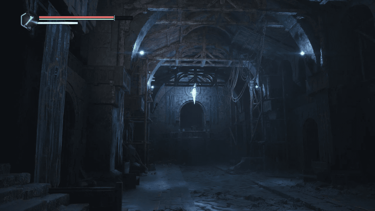 Где найти: меч спрятан в Лимбической крепости на озере Цинон. Чтобы до него добраться, нужно дважды опустить уровень воды с помощью колеса неподалёку. После этого спустись по северо-восточной лестнице и спрыгни в дыру. Далее иди прямо, пока не дойдёшь до комнаты, забитой врагами. После боя иди вправо до комнаты с сияющим кристаллом над алтарём. Отсюда пройди налево и вниз по лестнице. Когда вернёшься в комнату с колесом, спрыгни на любую из платформ ниже. Меч будет на одной из них.