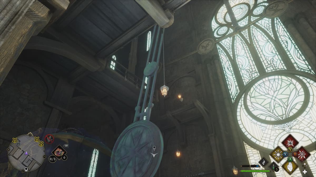Используй Глациус или Арресто Моментум, чтобы остановить маятник над Единорогом.