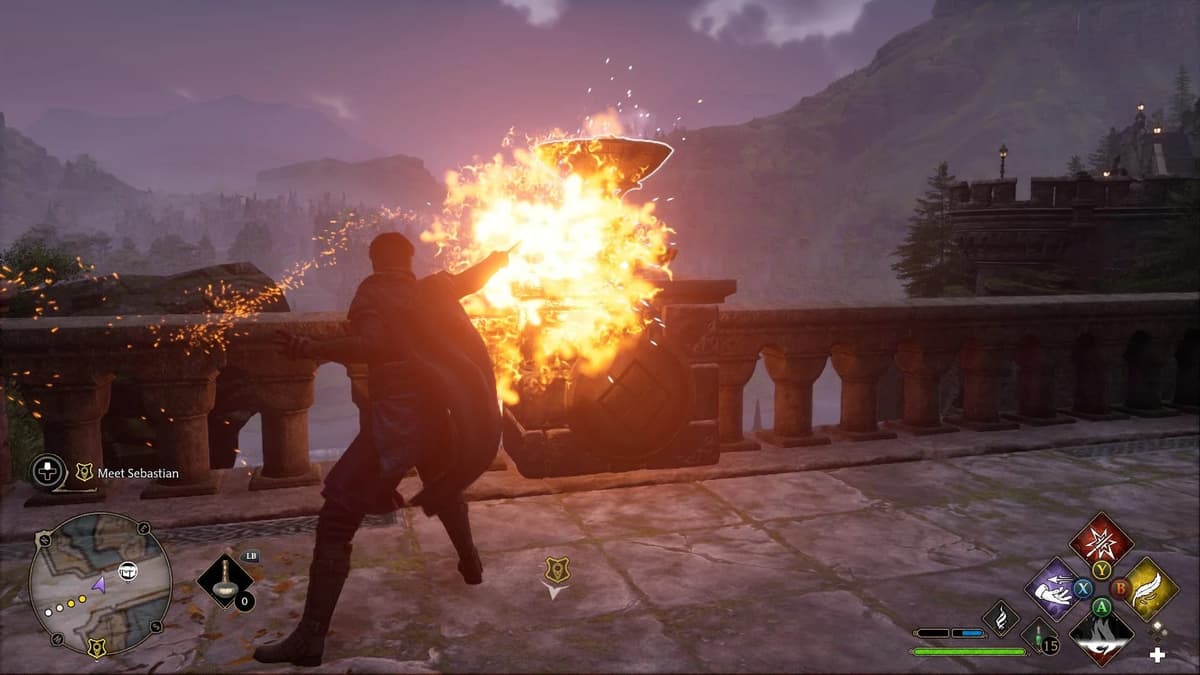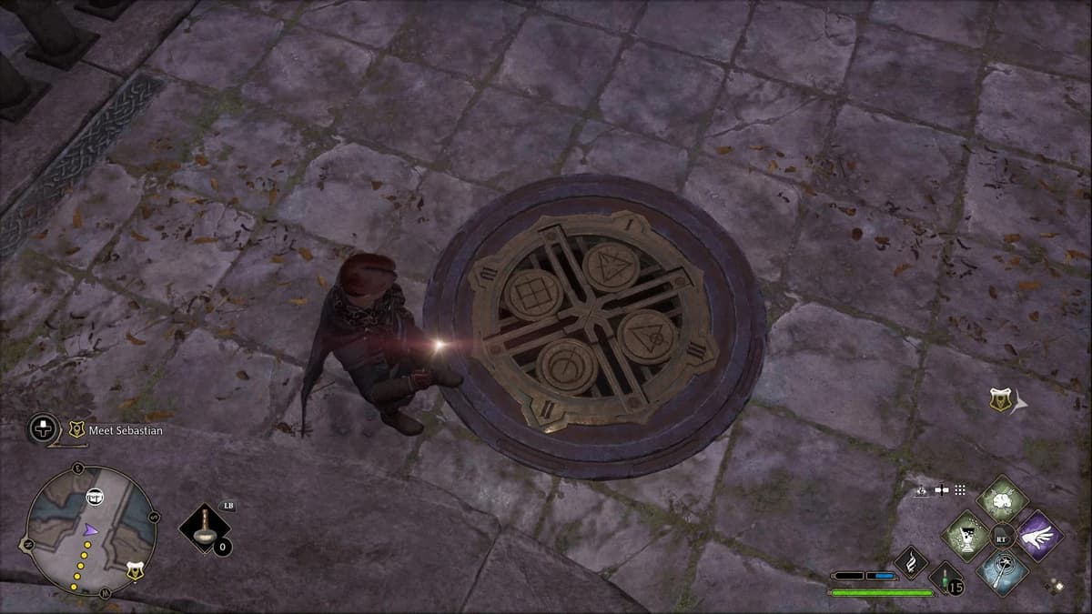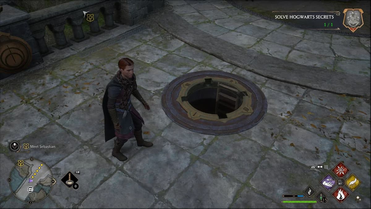 Иди в Южное крыло и телепортируйся к точке «Пламя камина: Двор Часовой башни».
