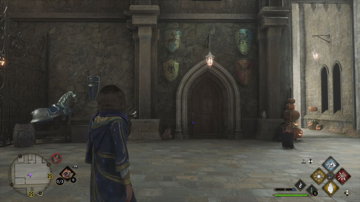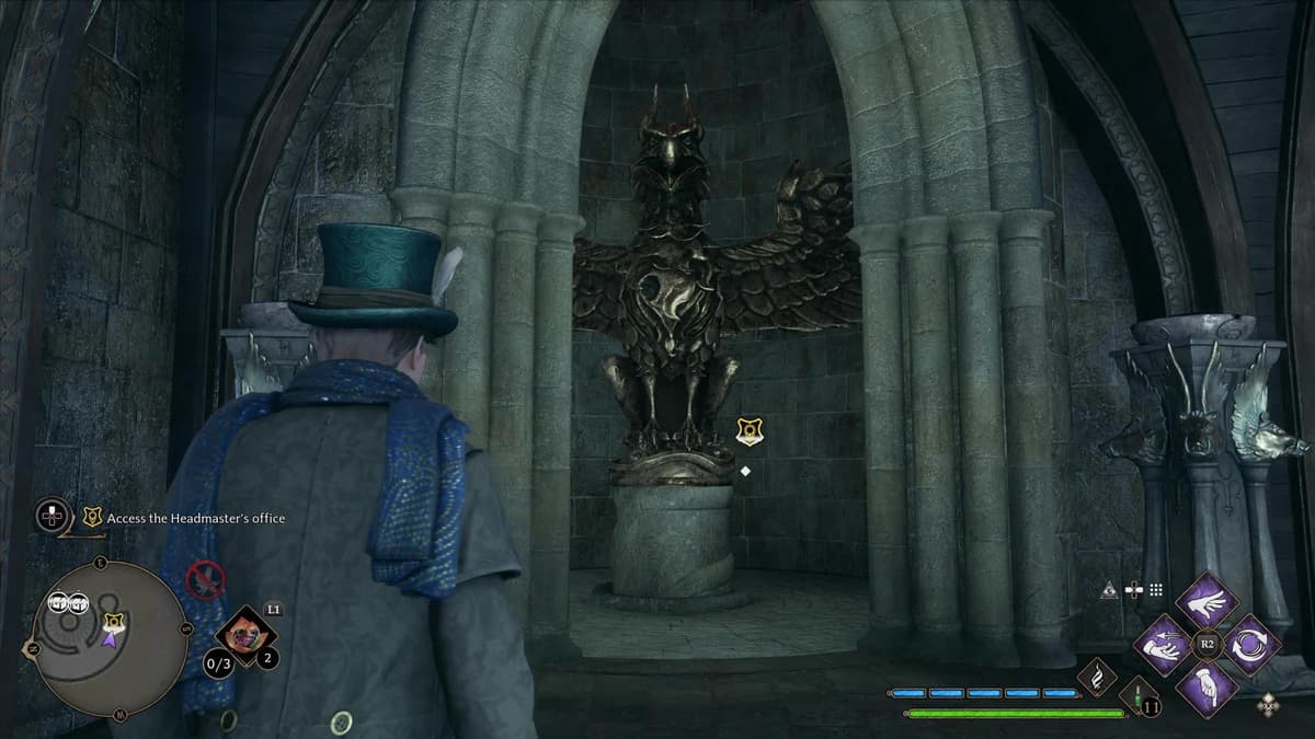 Если точка быстрого перемещения уже появилась — отлично. Если нет, поднимайся по лестницам рядом с Залом трофеев, пока не дойдёшь до таблички «Кабинет директора».